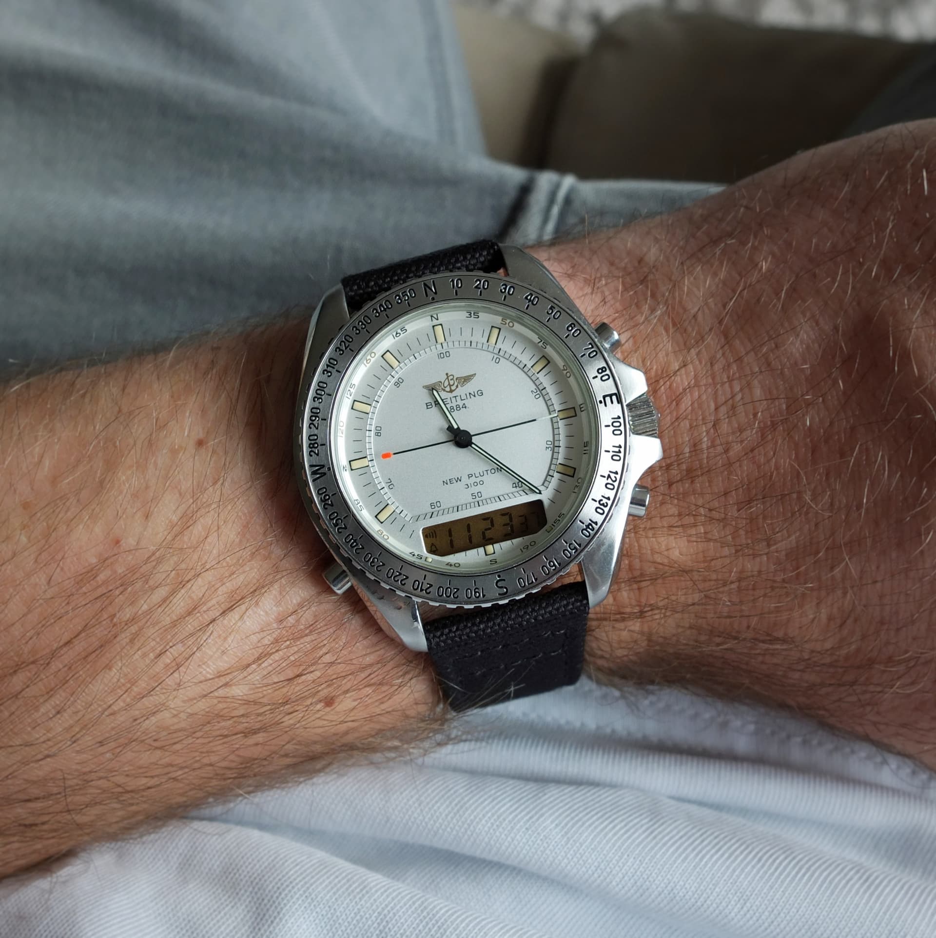 Ja, deze kwam voorbij voor weinig en kon het niet laten…Breitling New Pluton 3100 Was ik er naar op zoek? Nee. Was ik er helemaal weg van? Nee. Leuk om te hebben? Ja.