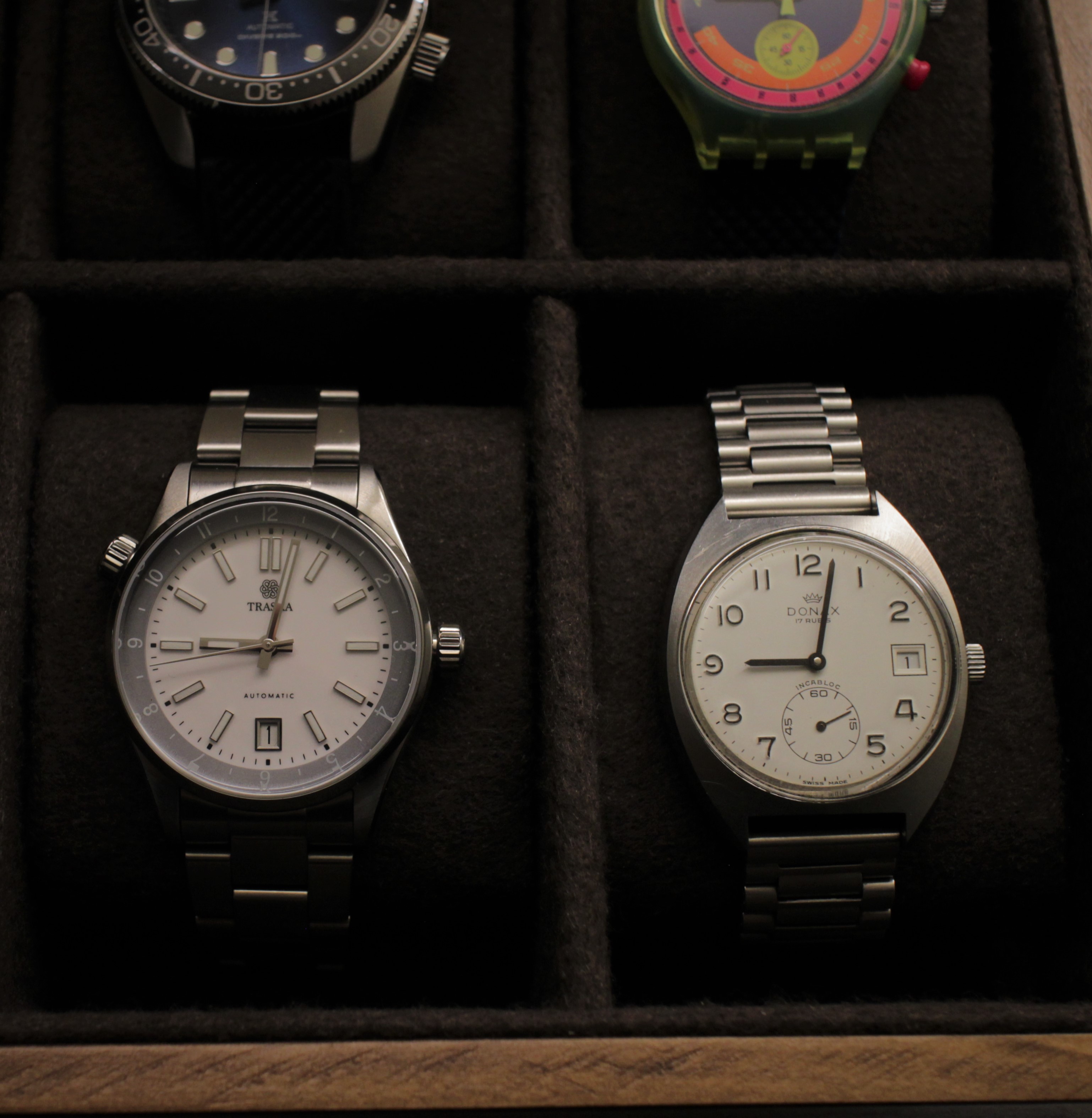 In deze zoektocht had ik al eens mijn oog laten vallen op de traska commuter, maar met de wat kleinere maat van 36,5 mm en de dial layout -die wel heel erg veel weg heeft van de rolex OP- was dit net niet helemaal wat ik zocht.