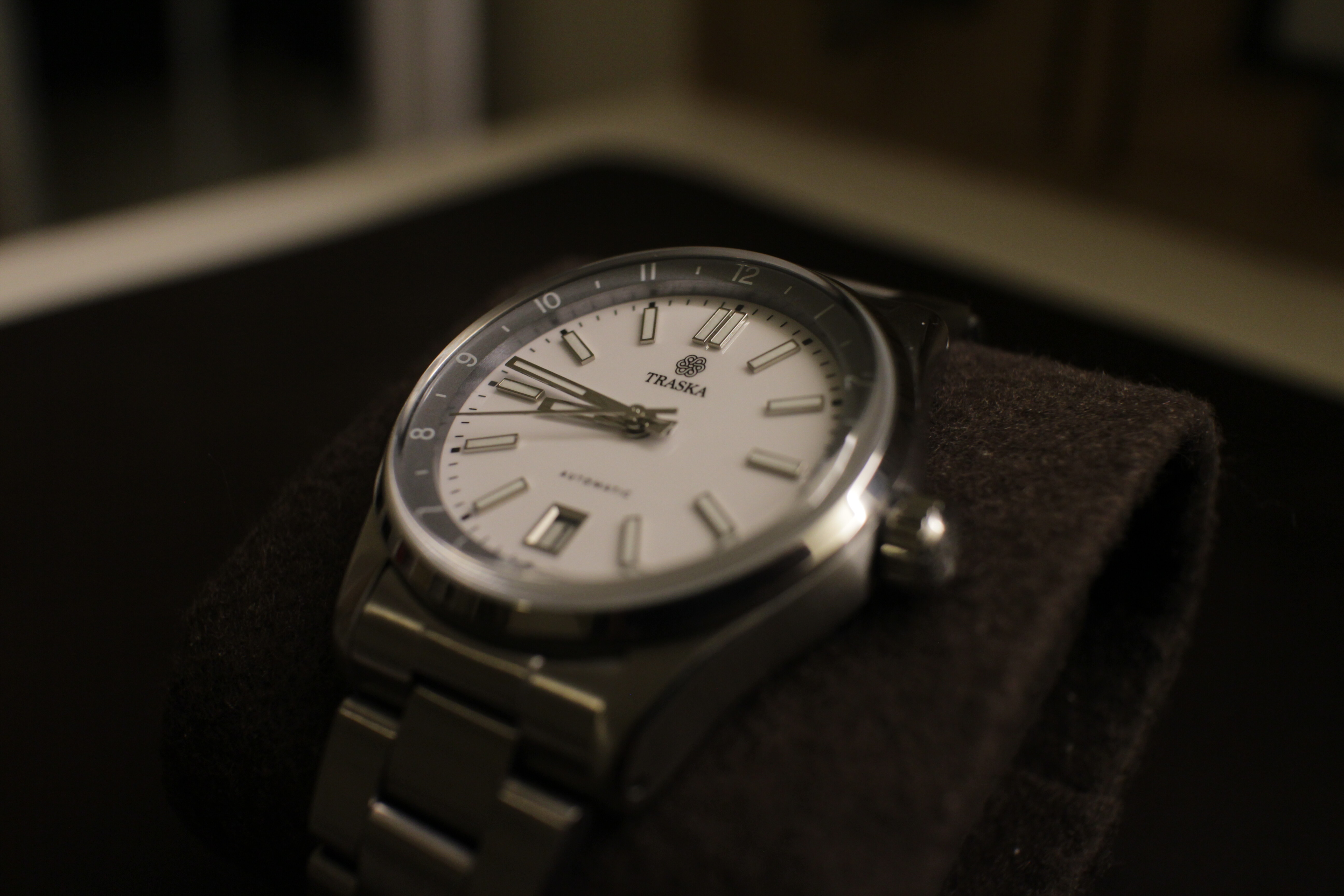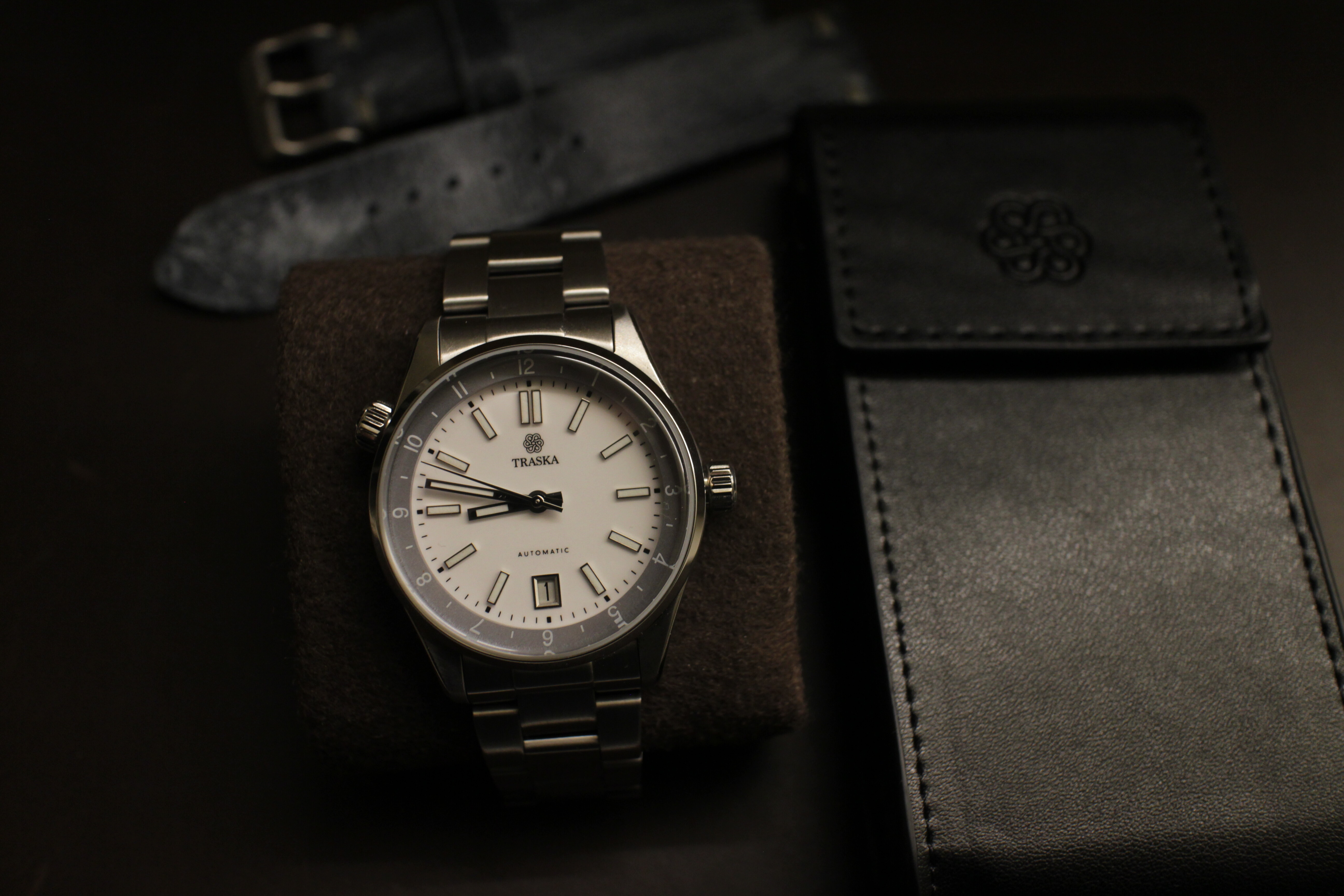 Maar kijk, net als je denkt dat je bankrekening even gespaard zal blijven kondigt Traska een nieuw model aan en ik twijfel geen moment. 38,5 mm, een roterende inner bezel van 12 uur -ideaal voor mijn werksituatie om nog een tijdszone erop na te houden-