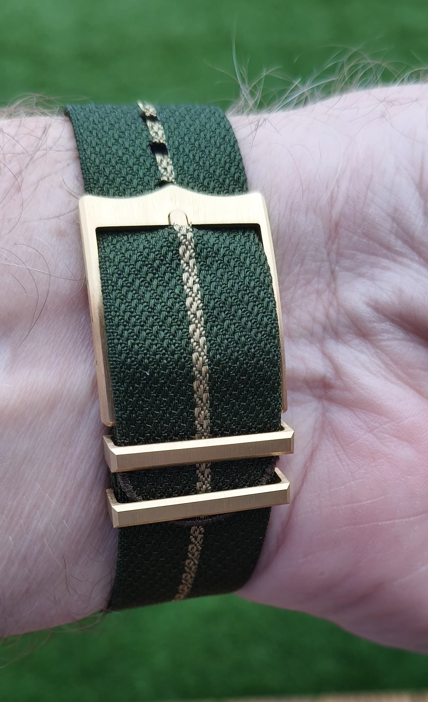 Nu 1 week in het bezit moet ik zeggen dat het horloge mij zeer positief heeft verrast, de gehele kleurstelling is mooi en goed in balans. Op de bruin lederen band heeft het horloge een geheel andere uitstraling en is mooier dan verwacht, op de groene textiel band (welke mijn voorkeur heeft) is hij ook weer totaal anders en komt het groen meer “eruit”. Bij het wisselen van de banden (uiteraard met beschermende tape) kwam ik de Gouden Pushpins tegen