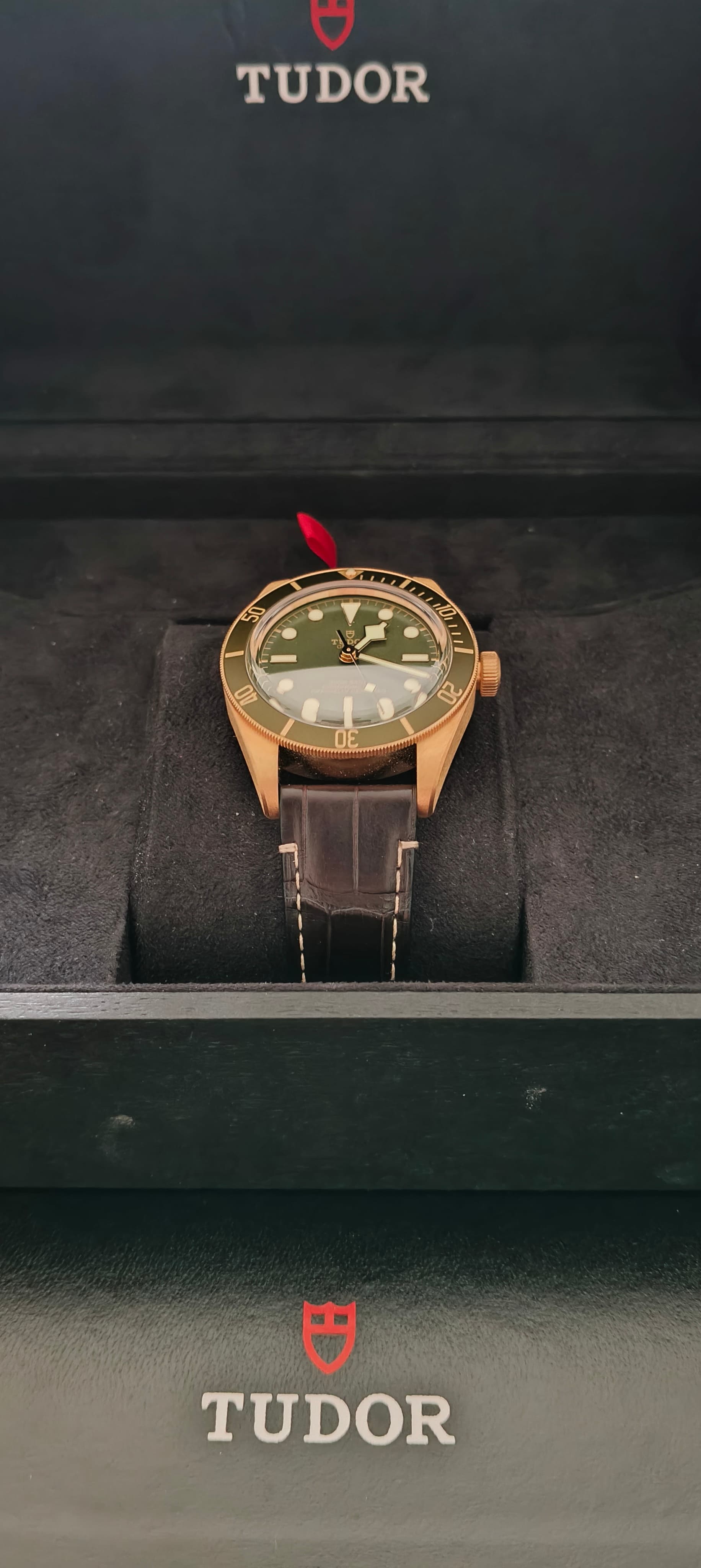 Heb ik mij toch weer laten verleiden om een nieuw horloge aan mijn collectie toe te voegen In de afgelopen jaren al wel eens gekeken naar de Tudor BB58 in het goud, soms omgehad maar niet de overtuiging om hem aan te schaffen mede door zijn hoge prijs. Voor de compleetheid even de gehele omschrijving van het horloge : Tudor Black Bay 58 in 18K/750 M79018V-0001.