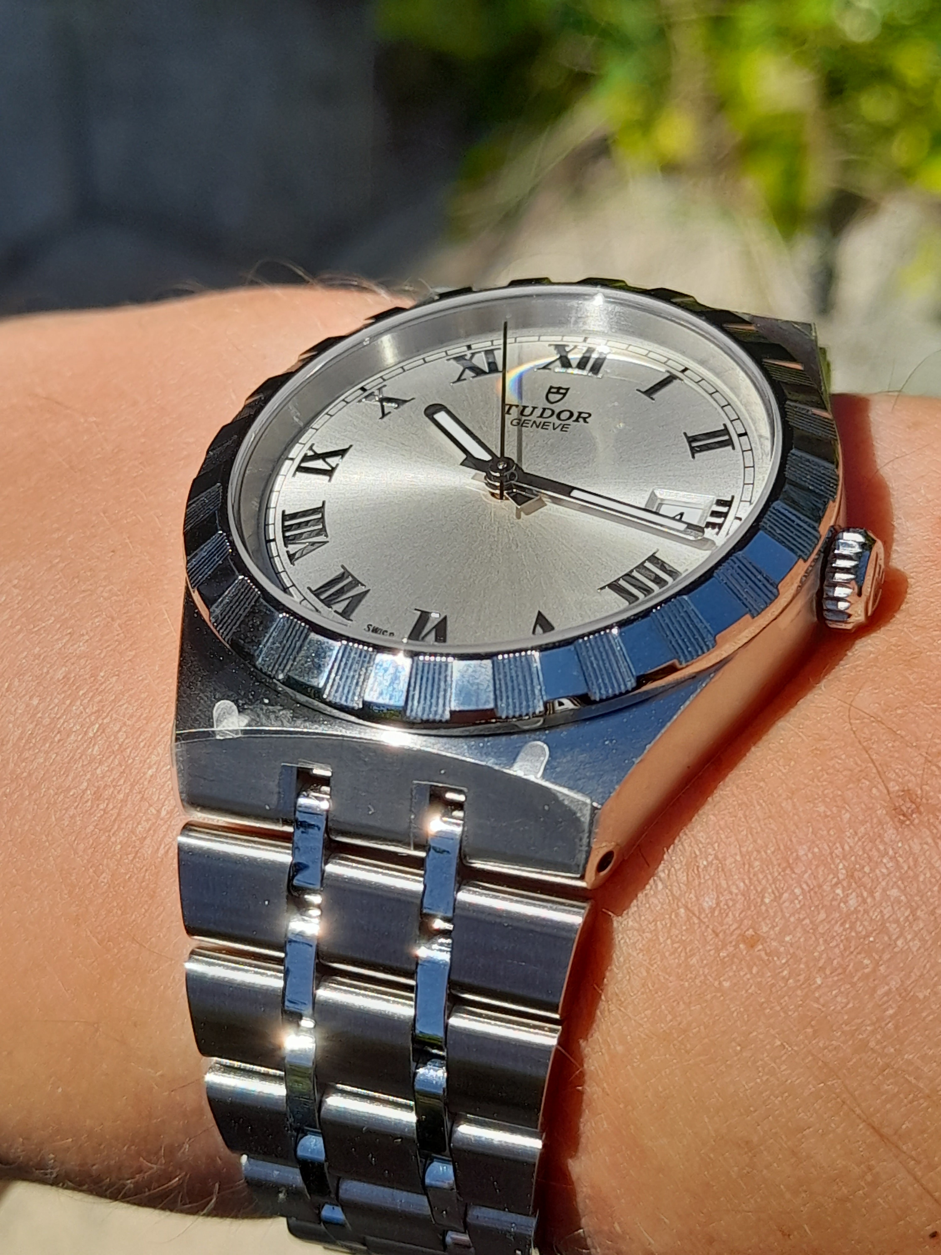 Had ik eerst nog twijfels bij de maat van 38 mm, gezien het gegeven dat de meeste van mijn horloges een grotere maat hebben, bleek die twijfel in werkelijkheid onterecht. Het is een mooie maat voor dit horloge, waarschijnlijk mede door de kastvorm alsmede het bling-gehalte van het horloge.