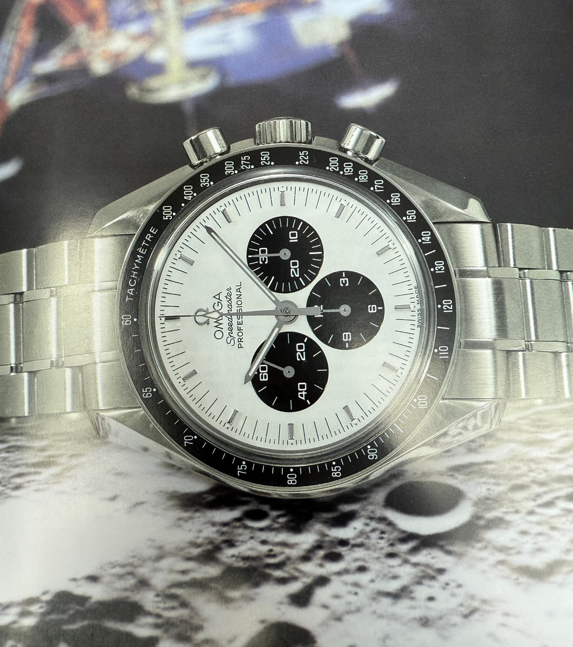 Dit is ook een mooie. We zijn als community een heel eind gekomen, met kennis delen en algemene opvattingen. Dat was in de 2007 wel anders. Ik kwam gisteren in de Antiquorum Omegamania catalogus uit 2007 deze “lot” tegen. Hier klopt dus helemaal niks van. Het zou een Italiaanse uitgave zijn en uit 1998 komen, maar het serienummer is van 2005. De referentie is van een Italiaanse Albino Speedmaster.