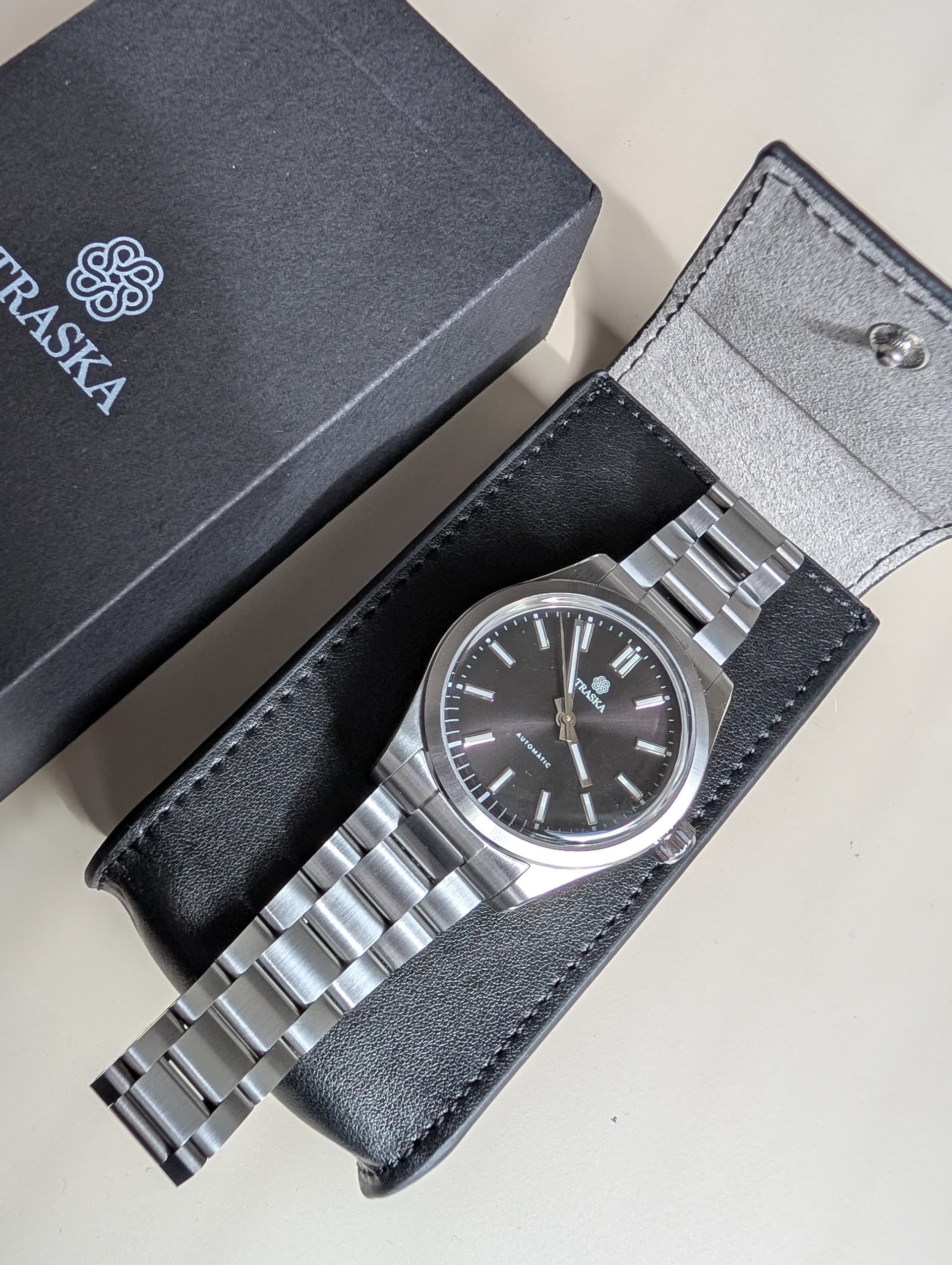 Ik heb die ook even gehad. De Traska is wel een niveau hoger qua alles eigenlijk. Met uitzondering van het uurwerk, dat is in beide een miyota uit dezelfde serie als ik me niet vergis. Is ie alweer opgeborgen?
