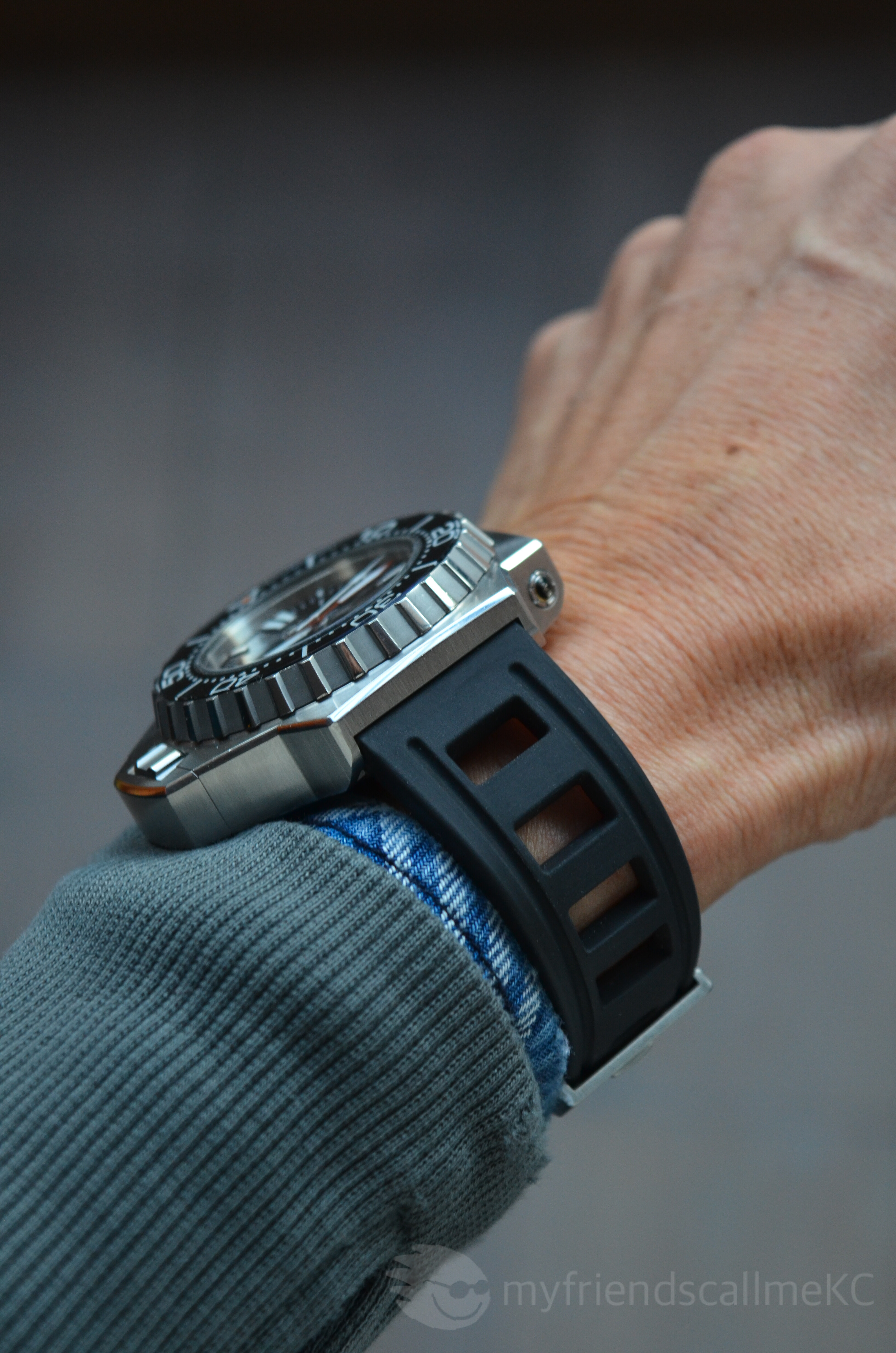 Dit is wel weer een hele mooie combinatie. De Isofrane-style strap geeft de PloProf een echte tool-watch-look. Ergens een jaar of 10 geleden is het merk Isofrane nieuw leven in geblazen en zij maken ook mooie “after-market” straps voor de PloProf. Een andere “goedkope” optie zijn de straps van Borealis. Naar mijn mening zijn dit de meest soepele/flexibele.