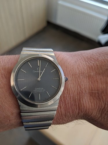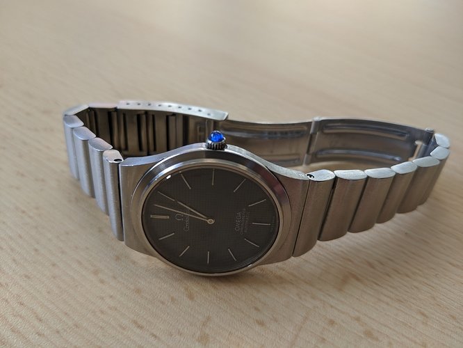 Een vintage diende het te worden, dat stond rap vast. Merk: voorkeur voor Tissot maar nog sterker voor Omega, mijn lievelingsmerk. Model: maakte niet echt uit - een Genéve vintage en meer recente Seamaster Bond heb ik - doch geen blauwe.