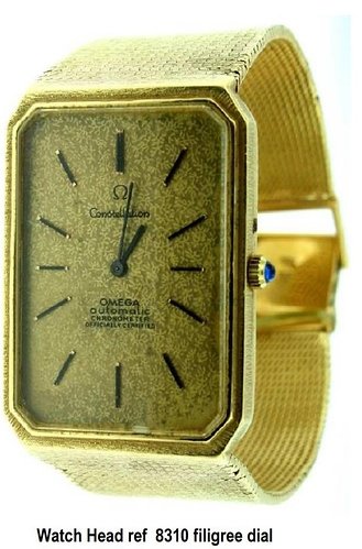 De kroon met blauwe steen is vermoedelijk een originele Omega crown maar van een ander model met caliber 712 (o.a. Watch Head ref 8310 filigree dial -> Desmonds blog).