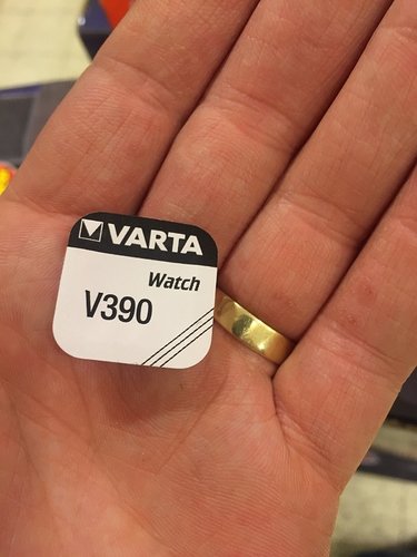 Vanmiddag even gekeken wat voor batterijtje erin moet blijkt een 391 die ik jammer genoeg niet had liggen, dus voorzichtig even met een andere gekeken of hij liep en ja hoor hij tikt!