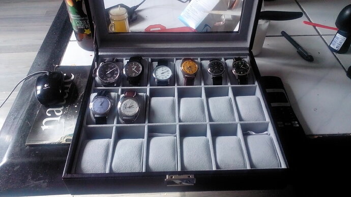 Ik heb er nog een om de pols (de Vostok Komandirskie) en er zijn er nog twee onderweg (een Rodina R0005RGB en een Poljot Flugkapitän), dus dan zit ik al op 11…