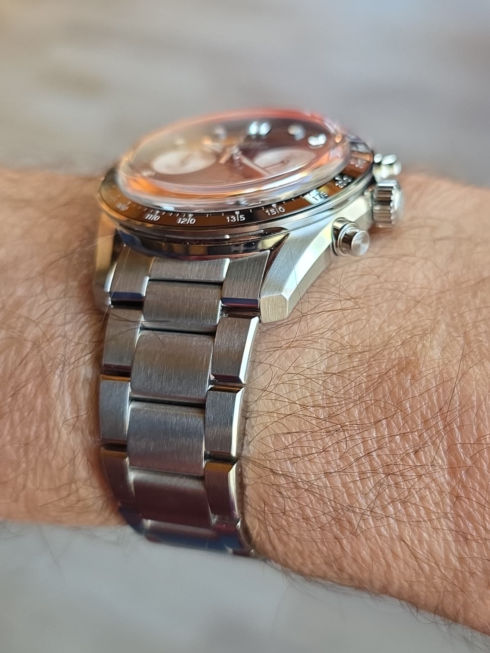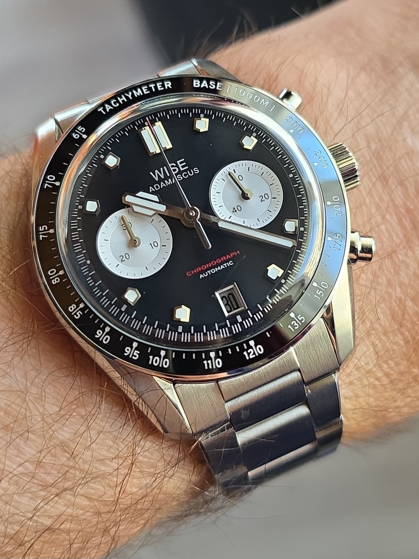 Toen Wise dan uitkwam vorig jaar met een kleinere chrono, die toch een eigen smoel had, was ik direct verkocht. Direct op de knop gedrukt toen ik de melding kreeg. Ik heb nummer 5.