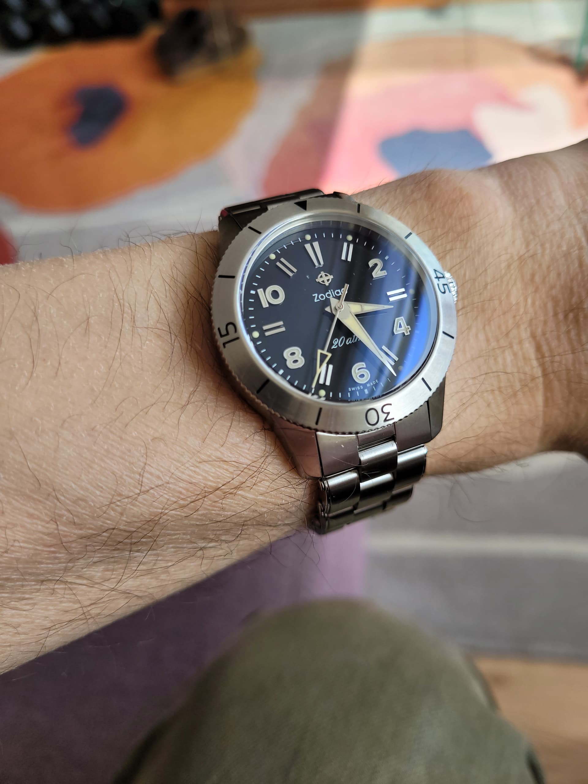 Ik heb een nieuwe! En een leuke/mooie al zeg ik het zelf. Zodiac Sea Wolf ZO0001. Mooie neo-vintage proporties (37mm) waardoor hij mooi past op mijn micropolsje