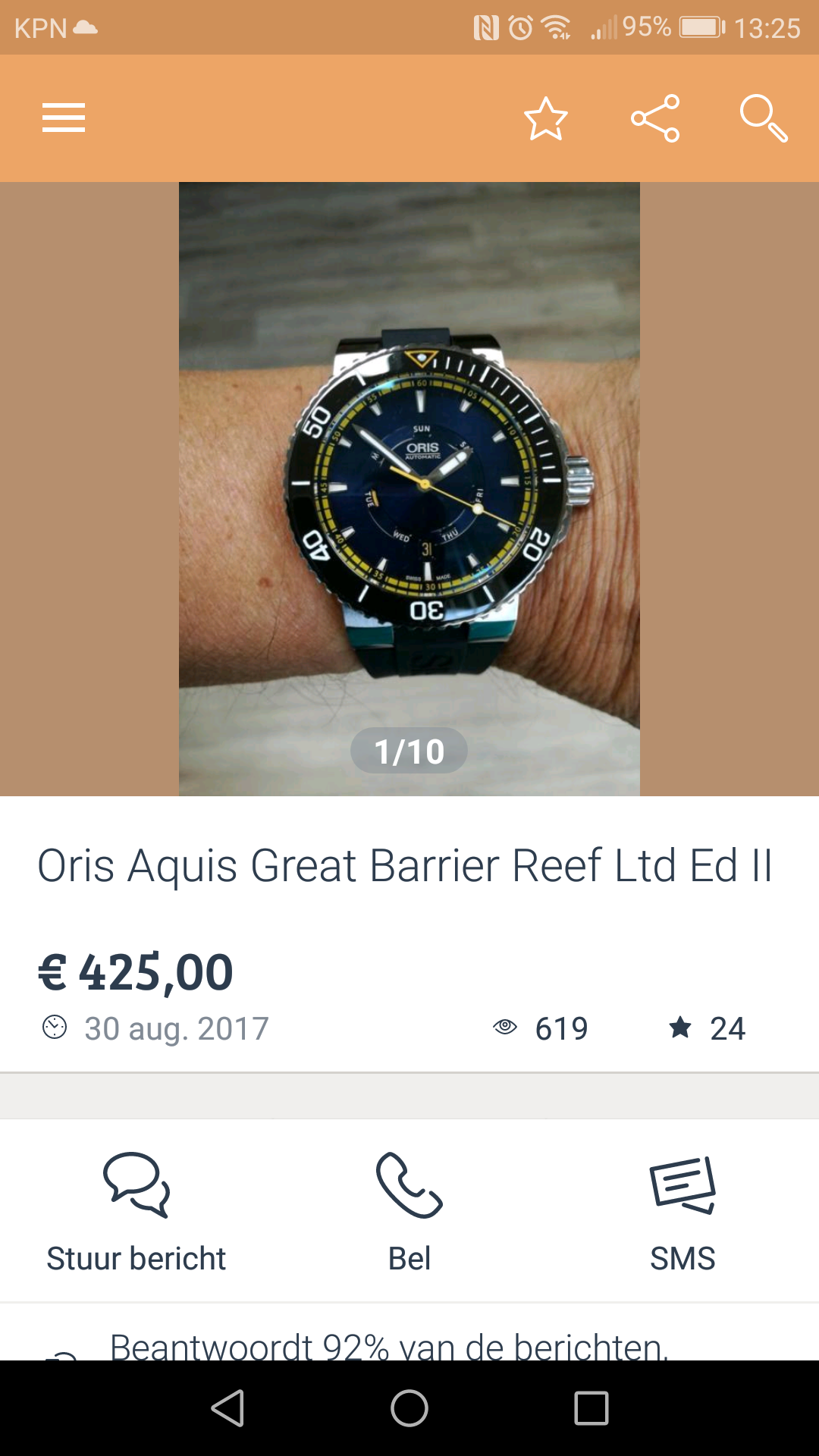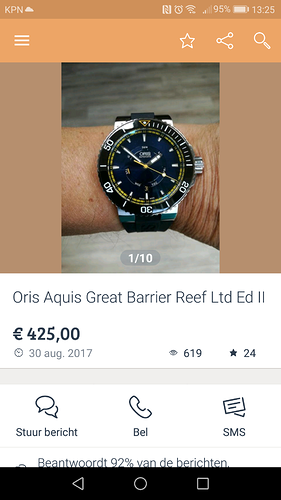 Ja ok, maar als je een nepper aan biedt, zou ik op z’n minst de eigenschappen van een originele in de advertentie zetten (niet dat ik ooit een neppe aan zal bieden (biedt eigenlijk uberhaubt nooit een horloge aan)). Nu ligt het er gelukkig dik bovenvop dat het niet klopt (de prijs geeft ook e.e.a. weg, immers is dit minimaal € 1.000 waard. schat ik in).
