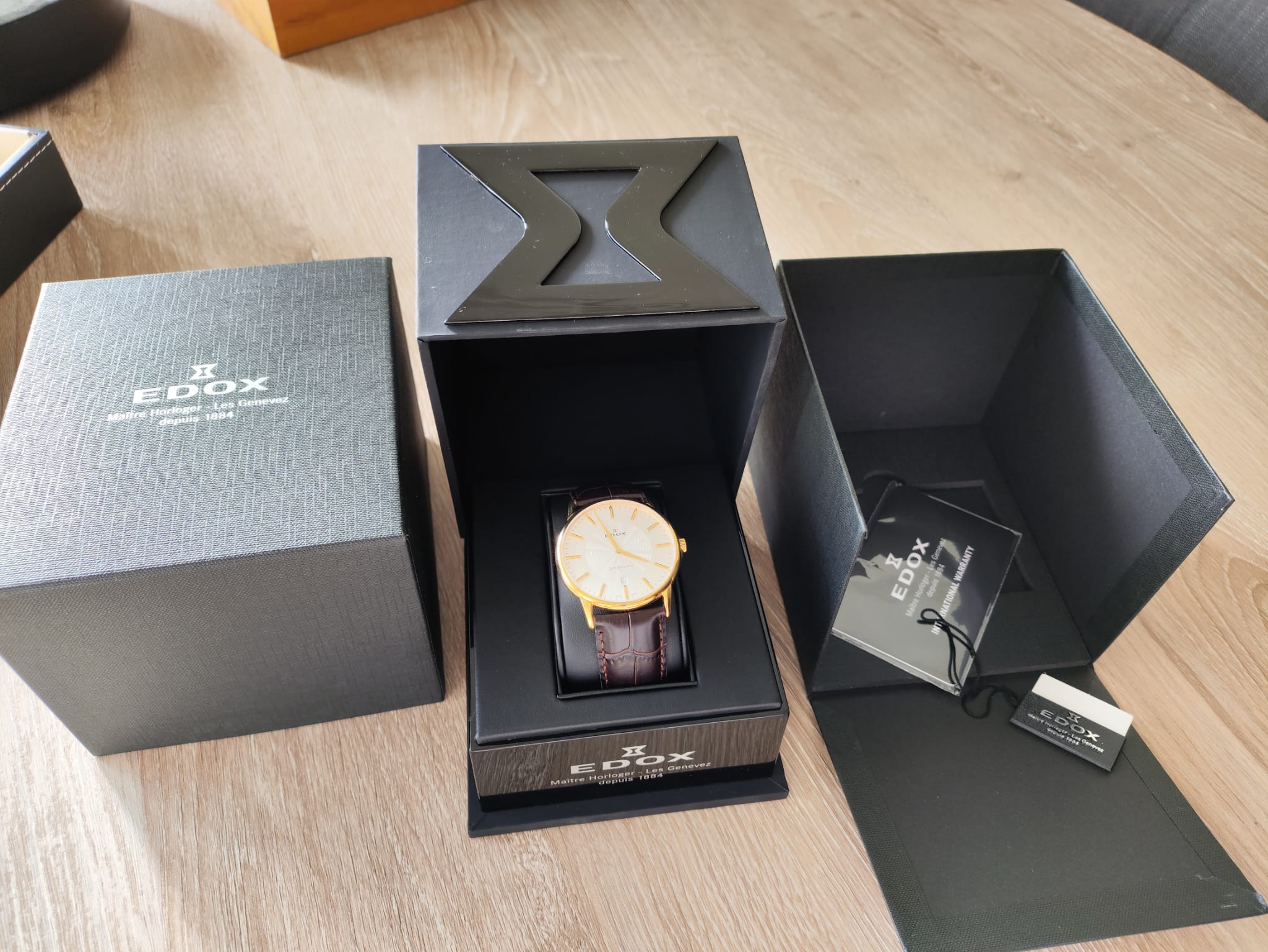 Verrasend, het was toch allemaal zuivere koek, een mooi bullet proof pakketje met daarin de Edox en een prachtige aankoop vindt en vond ik toen. Wat een omdoos en doos ook, dat maakt het uitpakken altijd super tof.