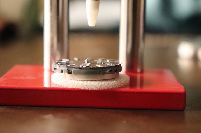 Caseback losgeschroeft en stem + kroon eruit gehaald.