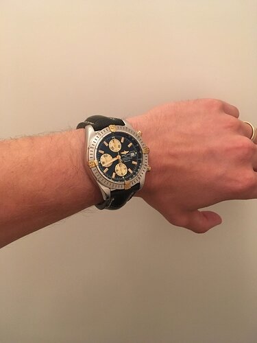 Heb zelf een breitling evolution op leer, is inderdaad een vrij stugge band en wanneer je beweegt voel je de rotor binnenin gewoon draaien. Het is gewoon een zware klok maar vind het altijd geweldig om hem te dragen.
