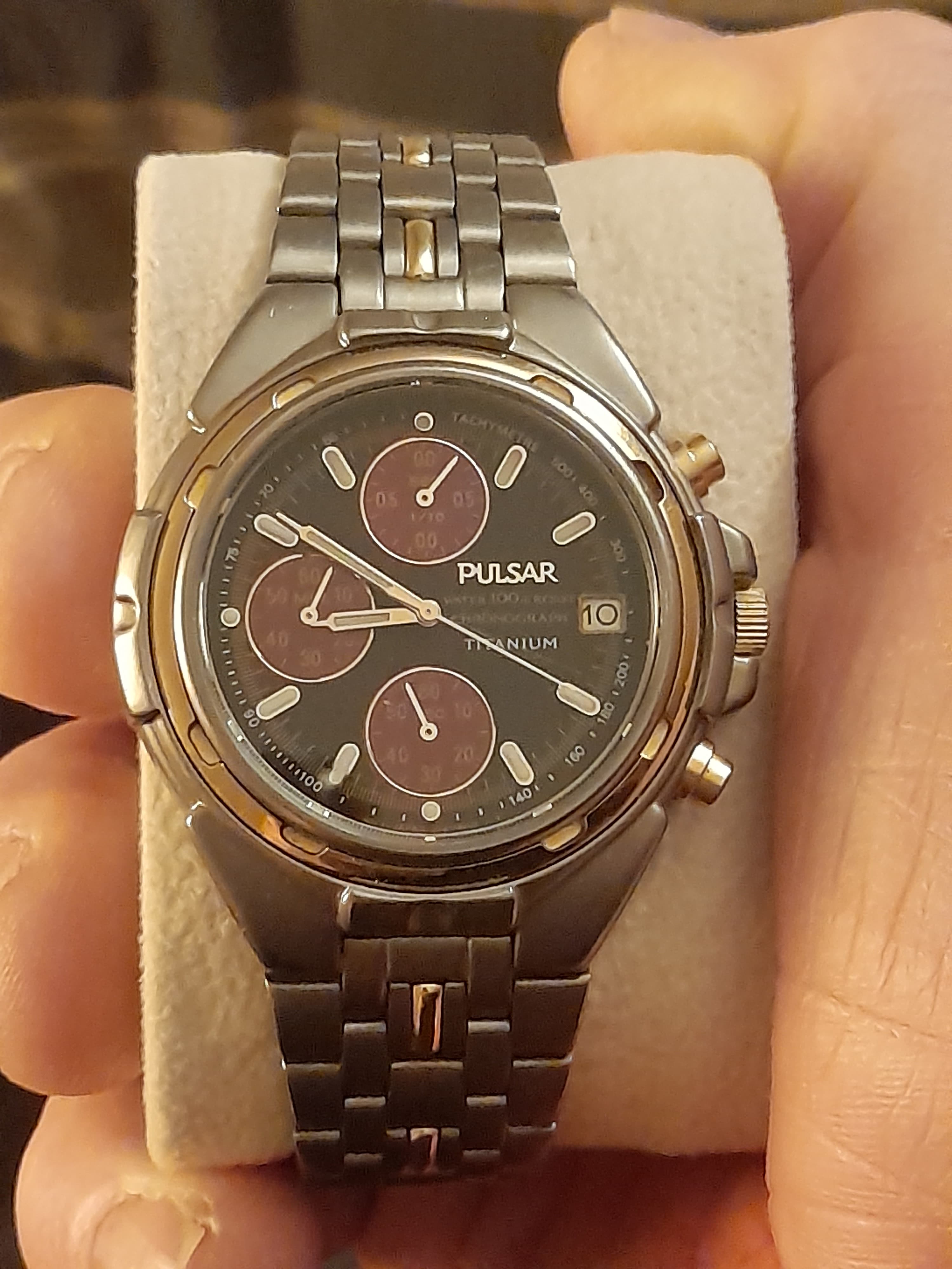 Verder deze Pulsar. Haar zusje ooit gekocht toen mijn eerste zoon op komst was, vervolgens dat horloge schandelijk verwaarloosd en plotseling met kerst 24 vanuit het niets deze als vervanger aangeboden gekregen van een forumgenoot met een gouden hart.