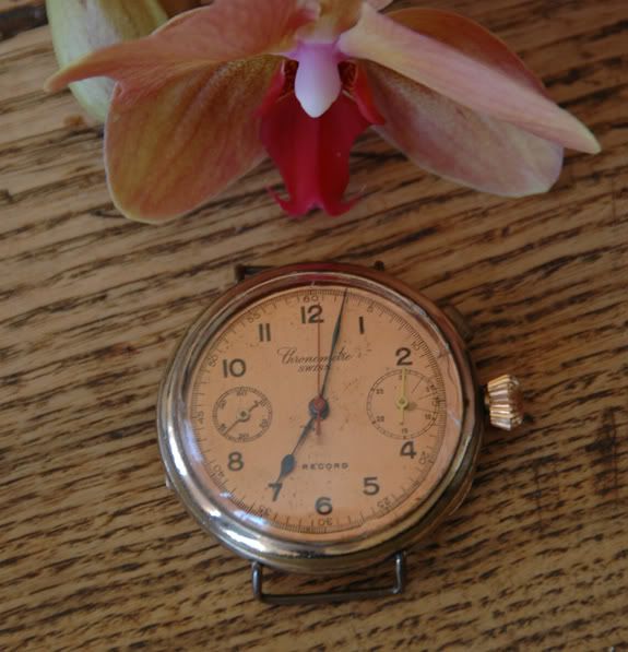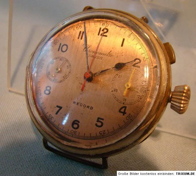 Op mij speurtocht krijg ik steeds scherpere neus voor Minerva uurwerken zo als in dit Record chronograaf met Minerva 19/9 uurwerk.