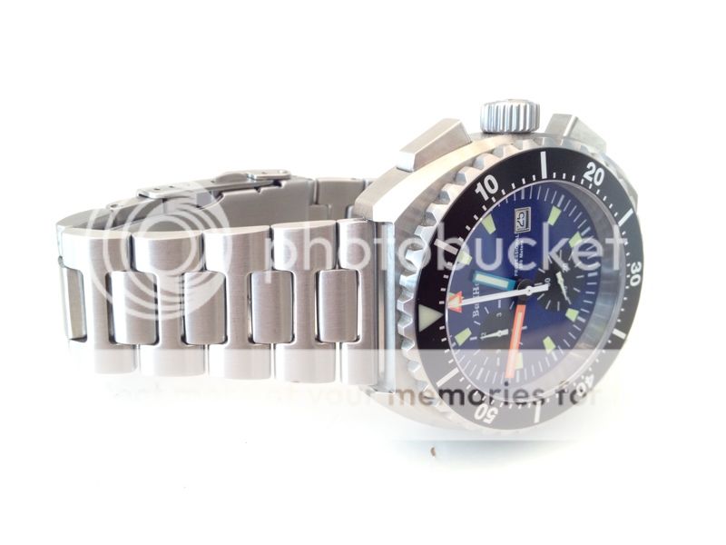 Als laatste heeft Chris, ook weer na vraag vanuit bestaande klanten en sites, een chrono gemaakt, Model “C’”. Verkrijgbaar met blauwe of zwarte wijzerplaat, de blauwe vind ik helemaal top!