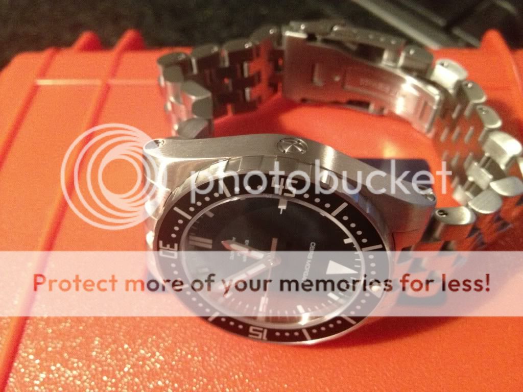 Het is echt een goed afgewerkt horloge, lekker zwaar, heel fijne stalen band: massief en eenzijdig geschroefd, dus je hebt maar 1 schroevendraaier nodig. Solide sluiting en een heel fijn en exact draaiende bezel.