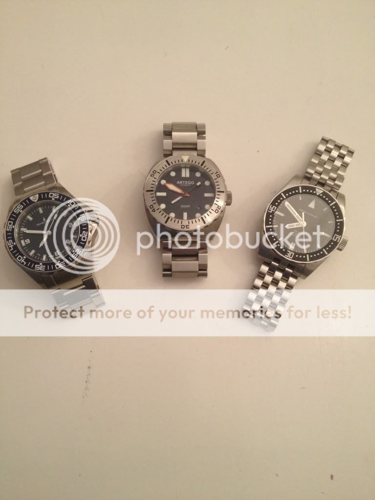 Door de dunne bezel lijkt ie een stuk groter dan deze twee andere boutique duikers.