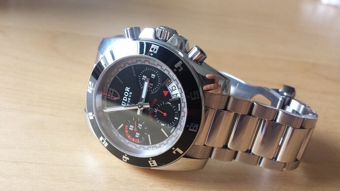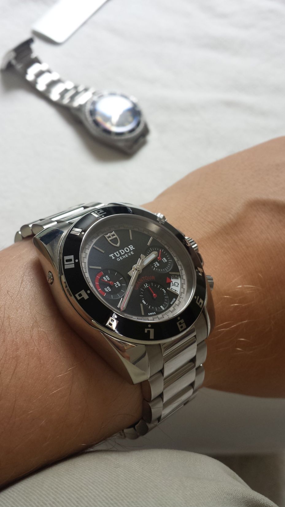 Toch vraag ik me af hoe lang hij gaat blijven bij me. Ben toch iets kleinere en meer low profile horloges gewend. Zie me deze minder snel zakelijk dragen. De tijd zal uitwijzen of ik aan de Grantour wen. En getuige de reacties hier zal hij ook wel weer eens te verkopen zijn.