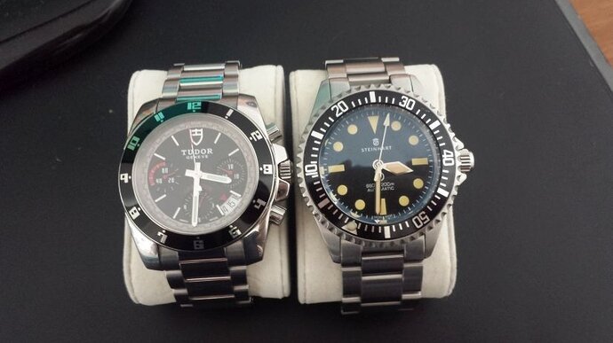 Goed, het is echt een wezenlijk ander horloge dan wat ik verder in mijn verzameling heb en normaal mooi vind… Standaard draag ik vintage horloges uit de jaren 70… Omega, Rolex, oude chrono’s. Zo niet deze, dit is echt een stuk groter, glimmender en drukker. Maar voor de afwisseling vind ik 'm erg leuk om er bij te hebben. Moet wel aan het formaat (41mm) wennen.