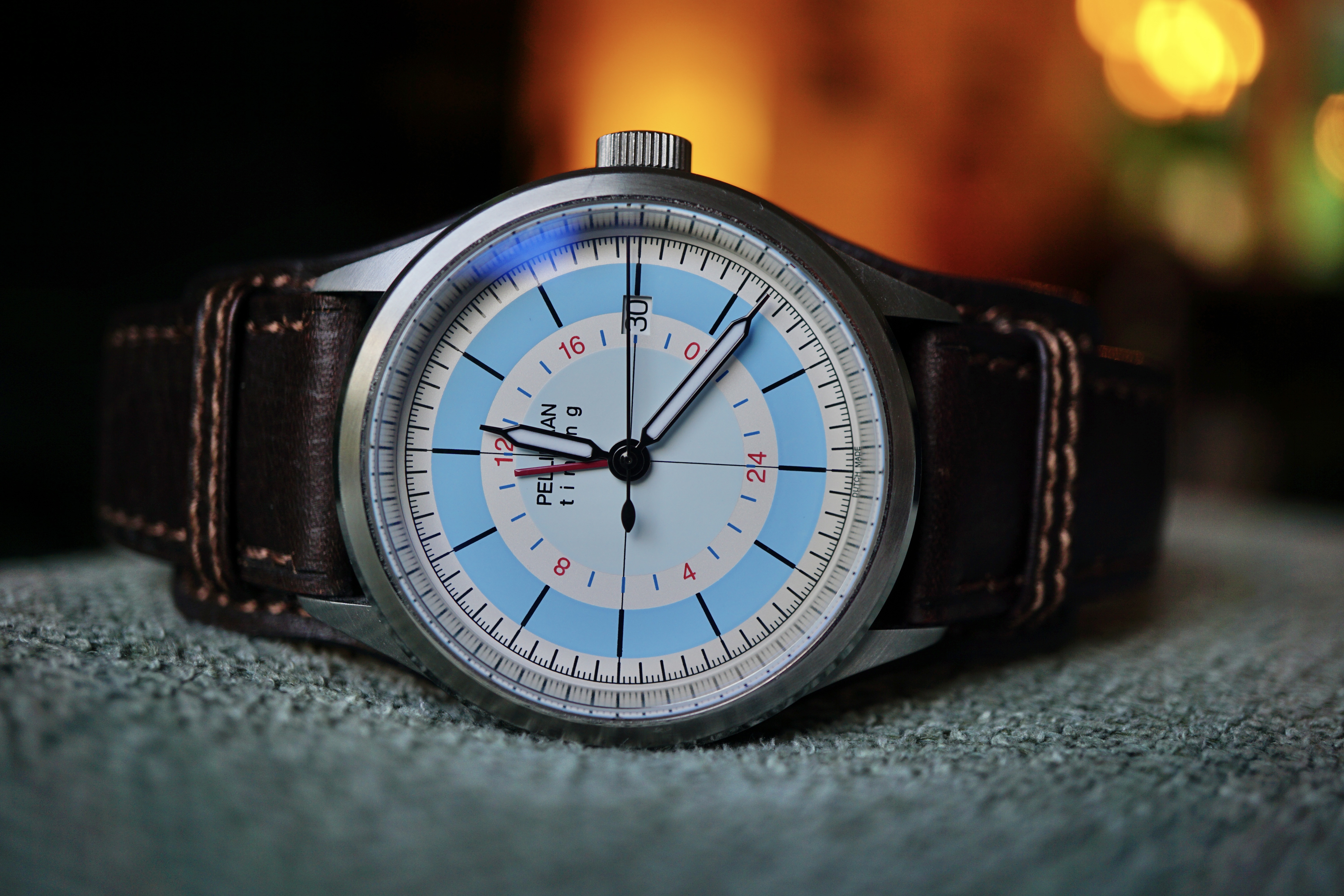 Derde horloge is het beste afgewerkt. De wijzerplaat is bijzonder detailrijk en erg strak gedaan. De wijzers zijn strak, en we hebben het weer over een Sellita uurwerk wat nipt beter aanvoelt dan de Soprod. De kast is erg klein en fijn van maat, het horloge is platter dan de overige 2, en de afwerking is weer een tandje hoger. Nog steeds 100m waterdichtheid.
