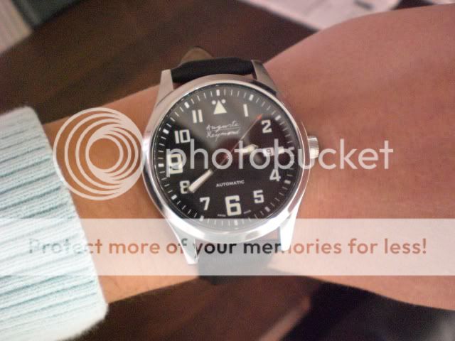 Vrijdag kwam de pakjespiet met de Auguste Reymond en vandaag naar Watch2008 B)-; ik ben er zeer over te spreken, voor mijn pols een perfecte maat, loopt nauwkeurig, zag vandaag trouwens dat de ‘12’ wel erg op Stowa Flieger lijkt maar dat terzijde.