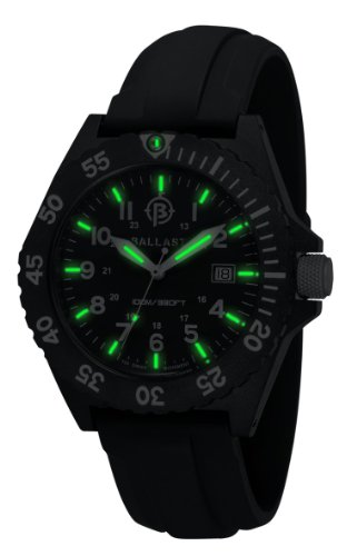 Zoals een echte special-ops horloge betaamt, heeft ie idd 200m wr voor de frogmannen onder ons. De datumschijf is voorzien van een zwarte achtergrond voor nog meer stealth. Ook heeft ie een wat stoerdere secondewijzer gekregen. Helaas heeft die vreemd genoeg geen H3 Tritium Tube, maar gewoon lume. Hele crappy lume wel te verstaan. Dit horloge is de beste reclame voor H3. Zo kun je op 1 horloge laten zien hoe geweldig lang Tritium Tubes blijven branden en lume letterlijk in een kwartier niet meer zichtbaar is. Zo waarderloos is de lume op hun secondewijzer (td). De pip/pearl heeft gelukkig wel weer H3.