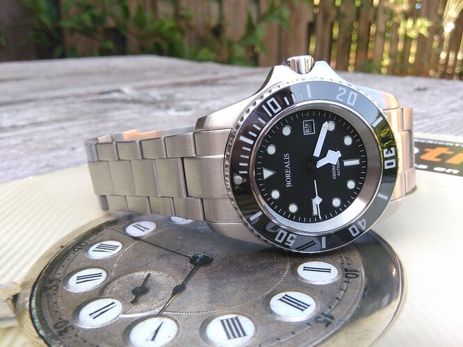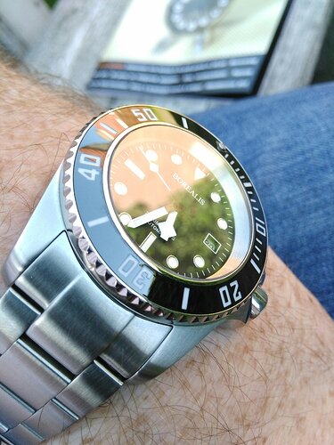 Vandaag van een forumlid overgenomen: voor mij de ideale zomerklok. Mooie strakke duiker met (bijna) traploze verlenging op de sluiting, waardoor deze altijd perfect passend is te maken. Mooie blauwe lumen en ceramische bezel en heel netjes afgewerkt allemaal. Ik denk dat deze de komende maanden veel polstijd gaat krijgen. Ook heel fijn voor pootjebaden, want 2000 meter waterdicht.