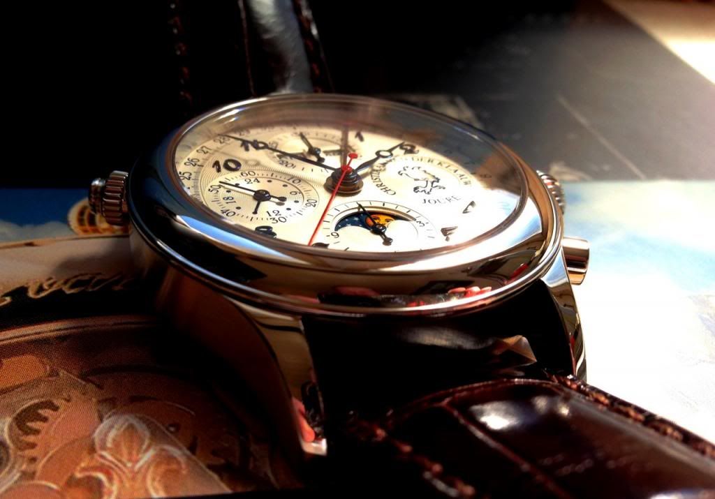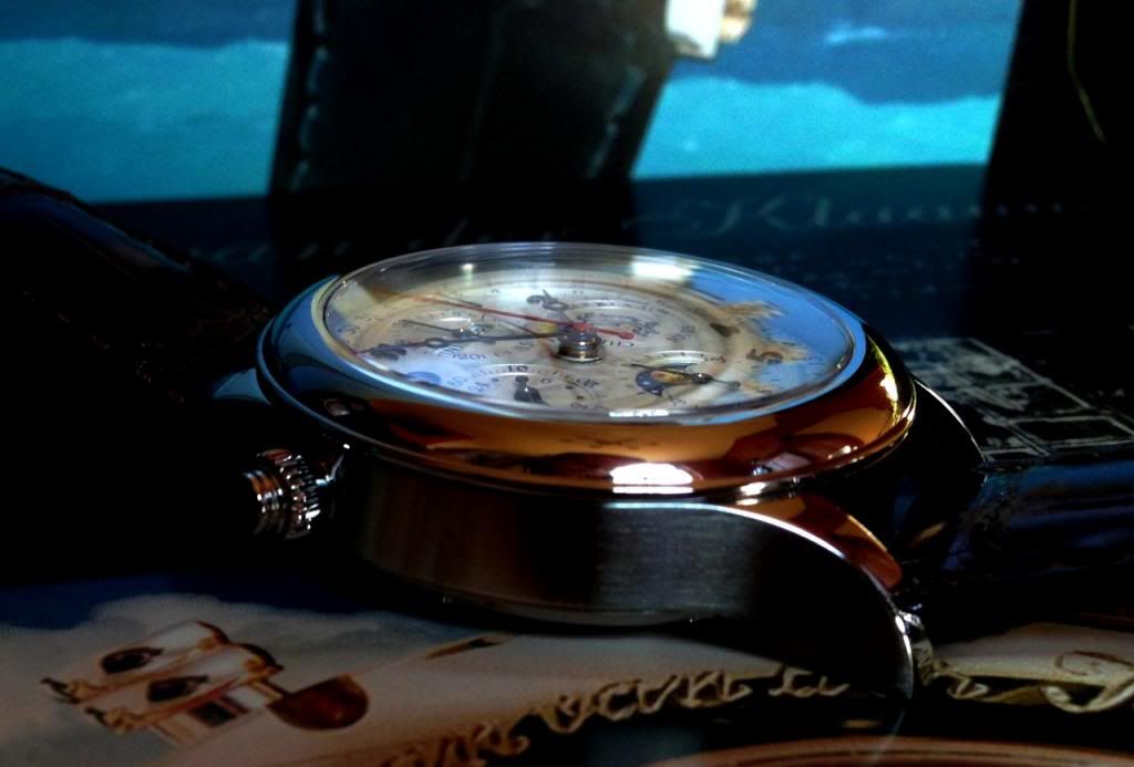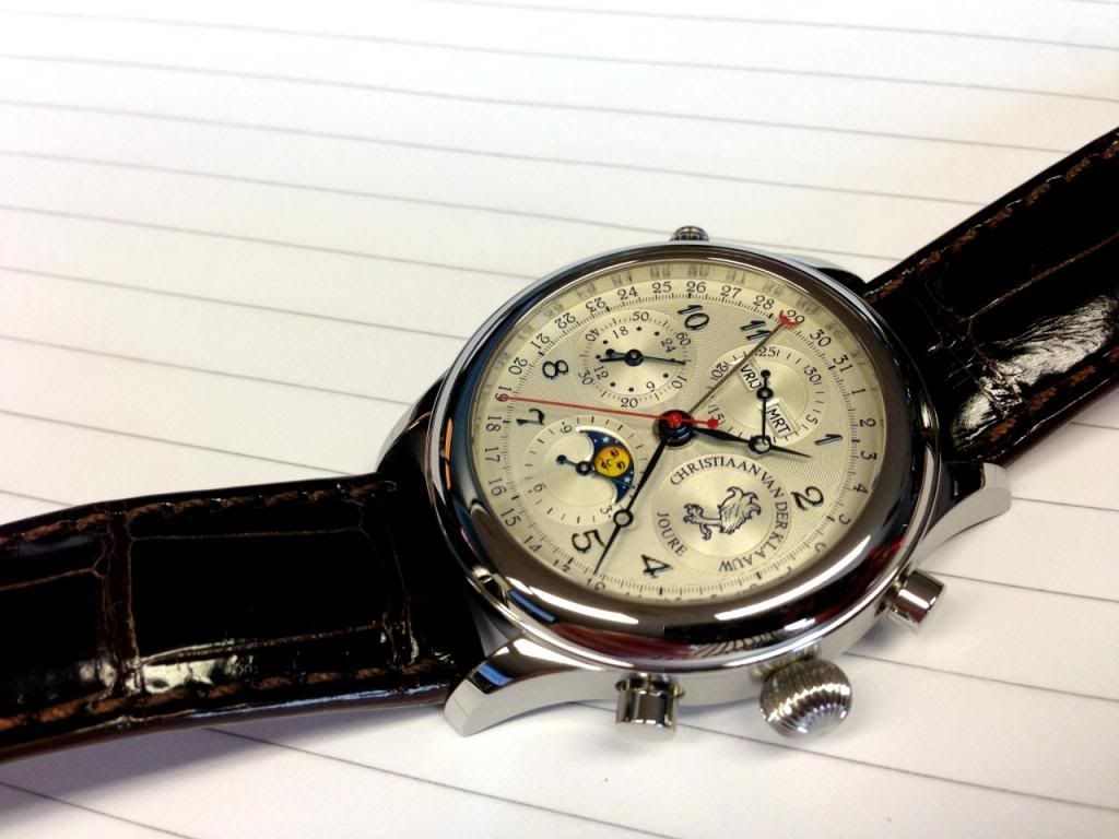 Ik had wel een aantal jaar geleden tijdens een revisie van mijn Ariadne een handgemaakte Benzinger wijzerplaat laten monteren, maar had wel de oude met opgelegde indexen netjes retour gekregen. (Oftewel alsof het zo had moeten zijn