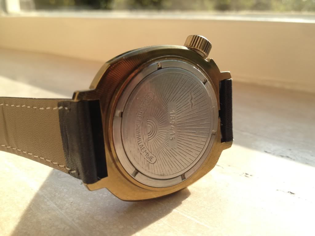 Ik ben erg entausiast. Het horloge is kleiner dan ik had verwacht. Mischien in mijn gedachte het vergelijk van een 2 meter grote rusische soldaat met dikke klok. Mijn eerste indruk is dat het behoorlijk verfijnd is. De kast is scherp gevormd en de details in de wijzerplaat zijn mooi en scherp. ook de achterplaat is mooi bewerkt. De “duikring” kan je 2 kanten op dreaaien zonder kliks. Het lijkt me ook geen duikershorloge. Door de leren band en goud afwerking kan je hem bijna als dress horloge dragen. Door de afwijkende kastvorm en de kroon op 2 uur is het een eigenzinnige klokje.