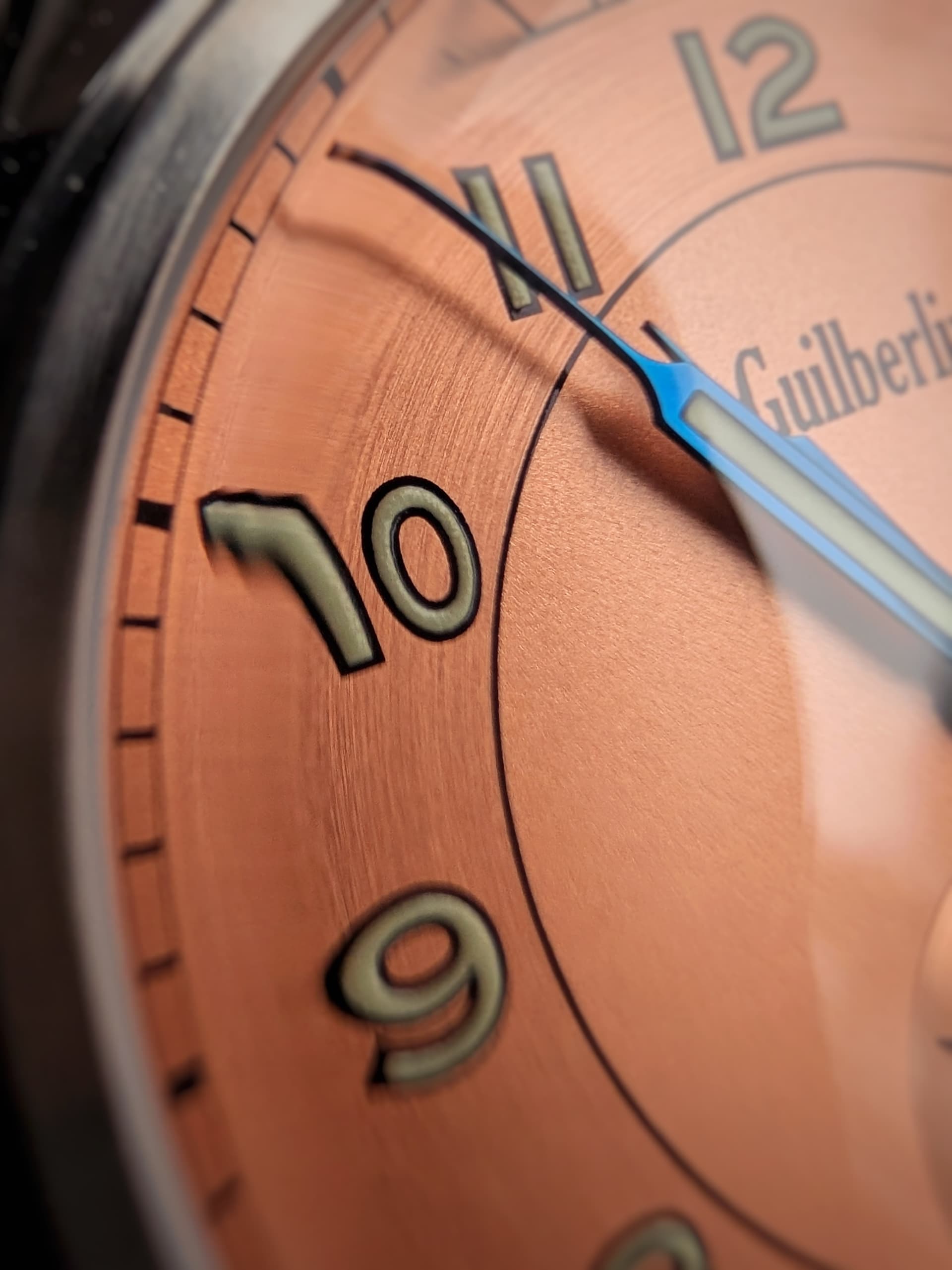 Om dit uit de weg te hebben: Guilberlin is een van de fantasie-merk van de Chinese Merkur-group. In het boekje wat erbij zat staat dat het merk in 1993 is opgericht door ene mr. Guilbert. Doe met deze informatie wat je wil, ik moest er vooral hartelijk om lachen. Wat ik belangrijker vindt ik dat dit horloge voor zover ik kan vinden géén ‘homage’ is. Er zijn héél veel horlogemerken die een dergelijk klassiek horloge met een zalmkleurige plaat en kleine seconde gemaakt hebben, van Longines en Omega tot Baltic en Farer.