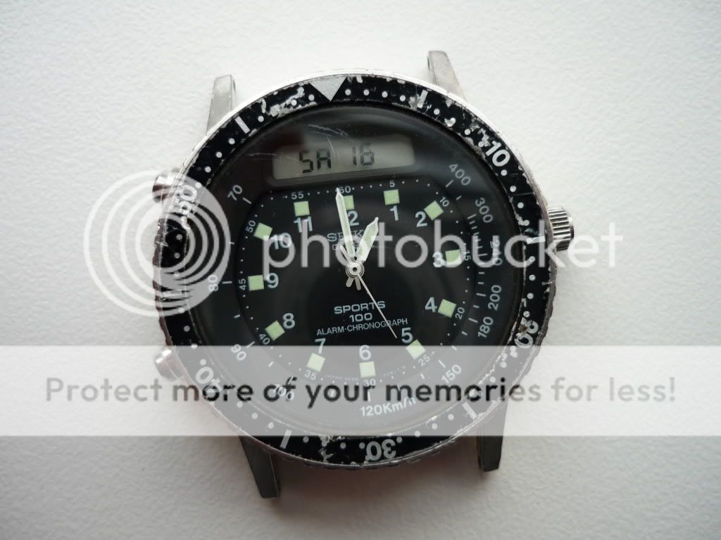 Bezel redelijk aangetast door de tand des tijds,glas wat lichte krassen,maar horloge is, volgens mij, van februari 1982(serienummer 225663. Heeft iemand enig idde ,waar ik de Seiko date,production calendar kan vinden).