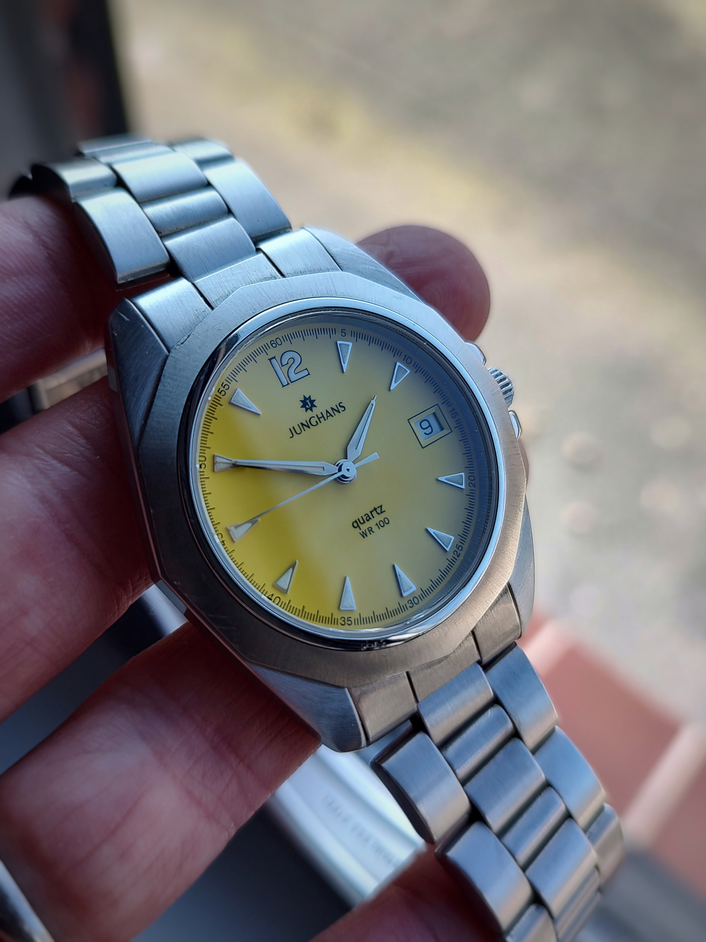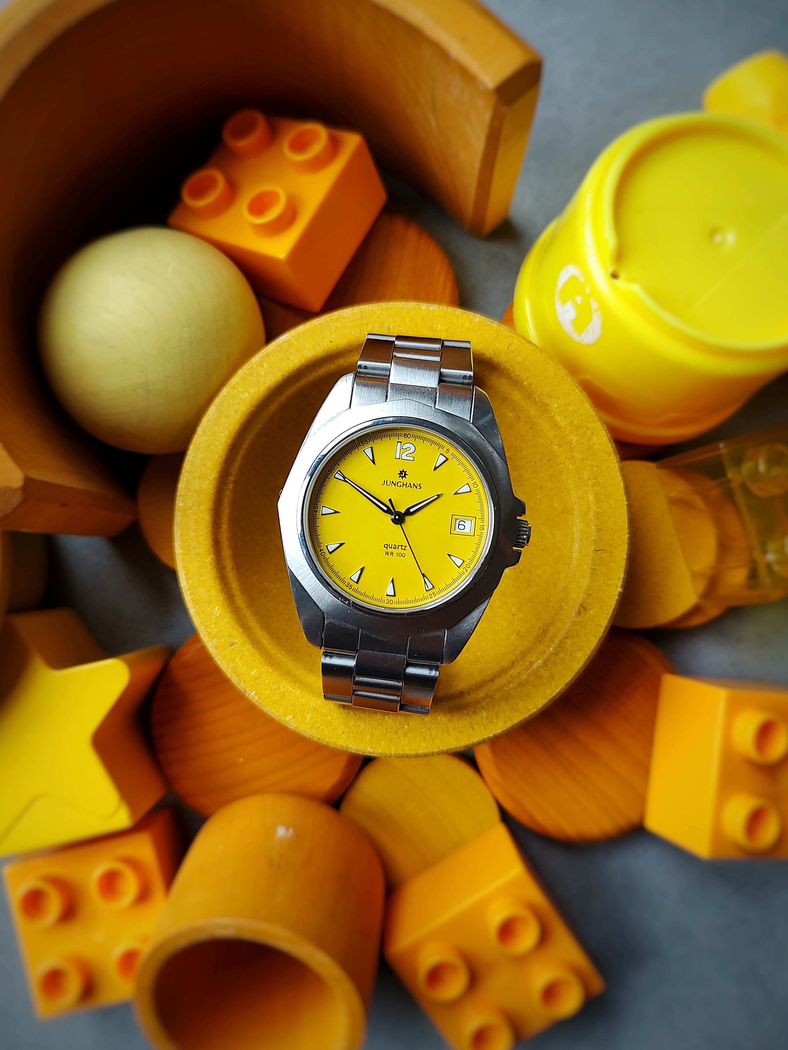 In januari werd dit opvallende horloge met z’n kanariegele wijzerplaat in het blauwe gedeelte aangeboden door @Uhrenliebhaber, die 'm recent uit Duitsland geimporteerd had.