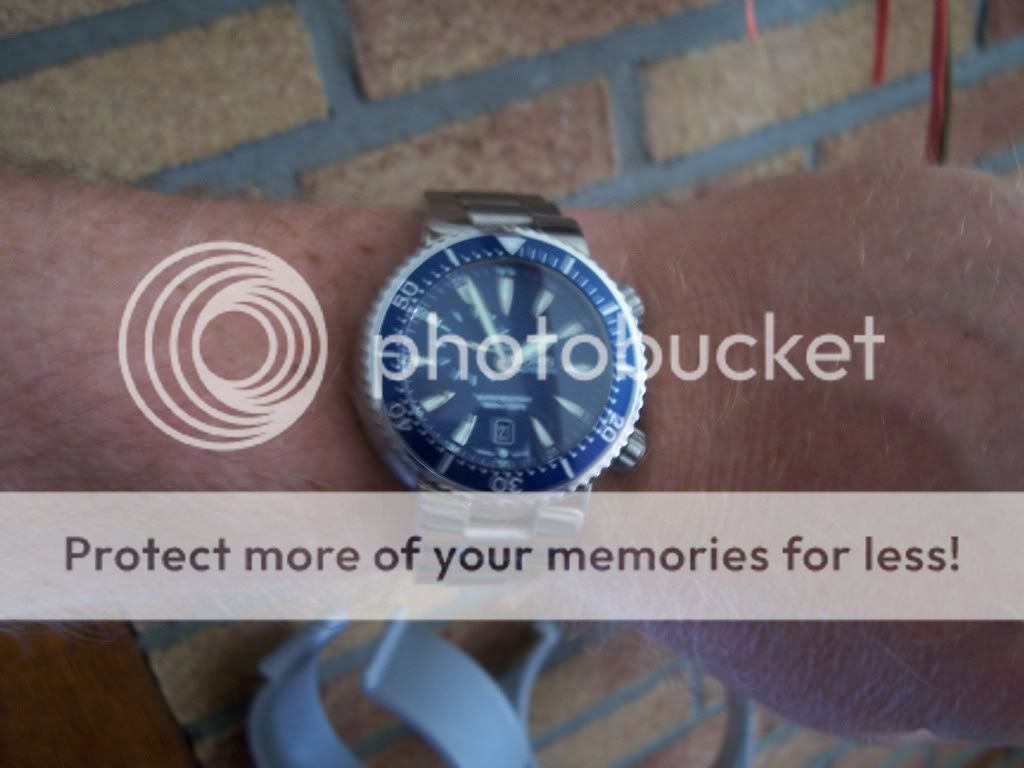 wat een prachtige klok is dit, ik was blij verrast toen ik m zag, en precies de goede maat voor mijn polsen, koen heeft ook nog een regelateur der meistertaucher in zijn bezit(het horloge dat ik eerst wilde aanschaffen, maar is mij dus idd te klein, ben blij dat ik de rit naar laren niet meer heb gemaakt, was echt voor niks gereden, dus nog even met koen gepraat die met enige weemoed afschijd heeft genomen van zijn blauwe oris duiker, en ik m verteld heb dat ik er heel goed op zou passen. weer terug naar den haag waar ik gelijk de band op maat heb gemaakt.