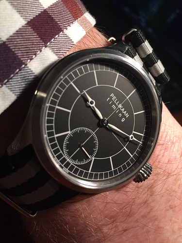 Nou⦠ik vind em dus op deze band wel mooi eigenlijk⦠omdat de kleuren op de Dial terugkomen in de band⦠een lederen band staat ook fraai op een Pellikaan⦠Ik geloof dat er laatst iemand was die de P1lot One band op zijn Pellikaan had gezet⦠schitterendā¦