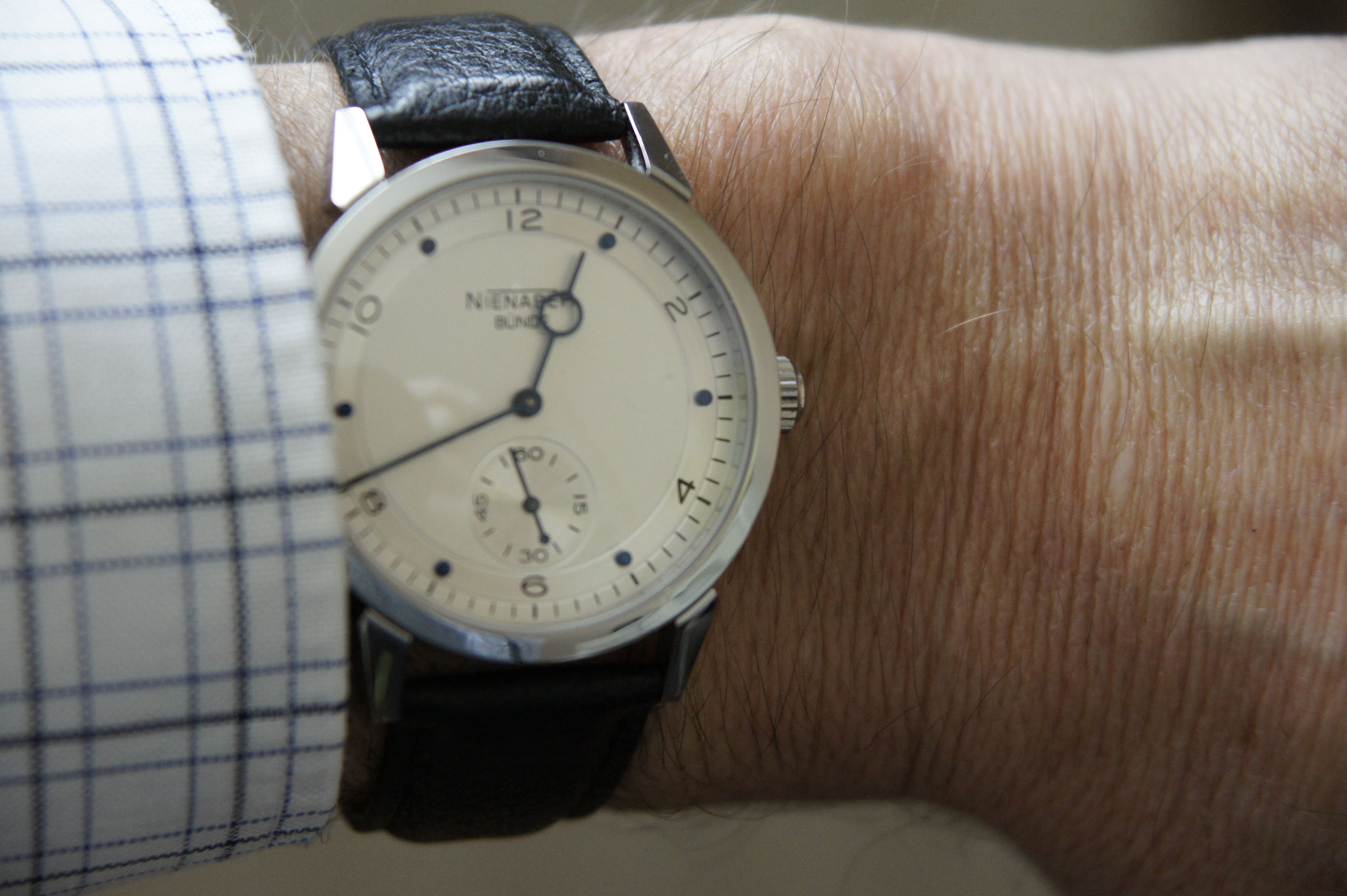 Had het horloge in München gezien tijdens de eerste dag van Munich Time. Aangezien er nog iets anders onderweg was even moeten nadenken… zondag besteld… opvallend eenvoudig in al het horlogegeweld dat daar te zien was.