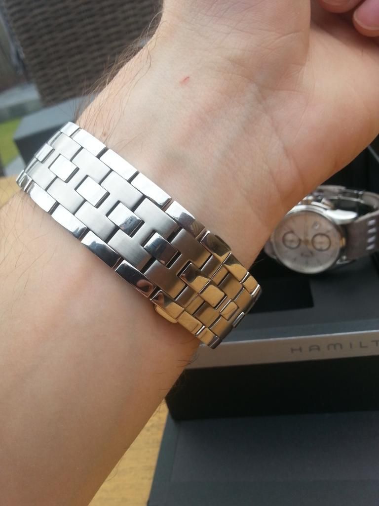 Mooi hoor, deze Hamilton en die bandschakels zijn blikvangers (idee van Ebel met hun “e” die nogal op een € lijkt)