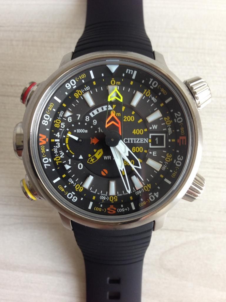 Sinds kort de trotse bezitter van oa de (nieuwe) Citizen Altichron. Ik was helemaal blij met het horloge, tot dat ik na 4 dagen constateerde dat de gele wijzer van de hoogtemeter niet helemaal recht omhoog staat in “rust”. Na het meten van de hoogte, stopt de wijzer in eerste instantie nagenoeg op de 0m, om vervolgens door bewegingen ed twee mm naar rechts te zakken (zie foto). Het lijkt wel of de wijzer los zit oid.
