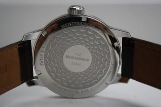 De achterkant heeft helaas geen zichtbodem, maar bij een handopwinder is niet veel te zien bij Meistersinger, dus daar kom ik wel overheen.