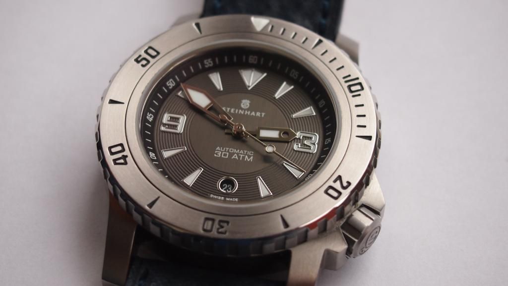 Leuk origineel design van Steinhart, zeer fraaie dial. De band vind ik minder, daar moet iets stoerders voor komen.