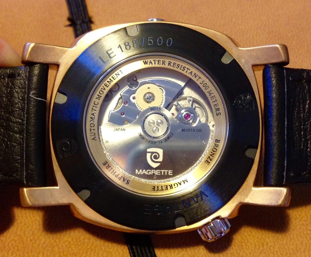 [/URL]Klassieke cushion case kast die Magrette bij veel van zijn klokken gebruikt, met de kroon op een wat minder klassieke positie.