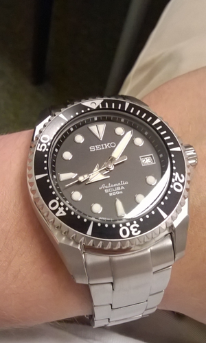 Ook de pols omklemmend vanwege de gebogen lugs. Lekker licht vanwege titanium. En een 22mm band ipv 20 op de sumo.