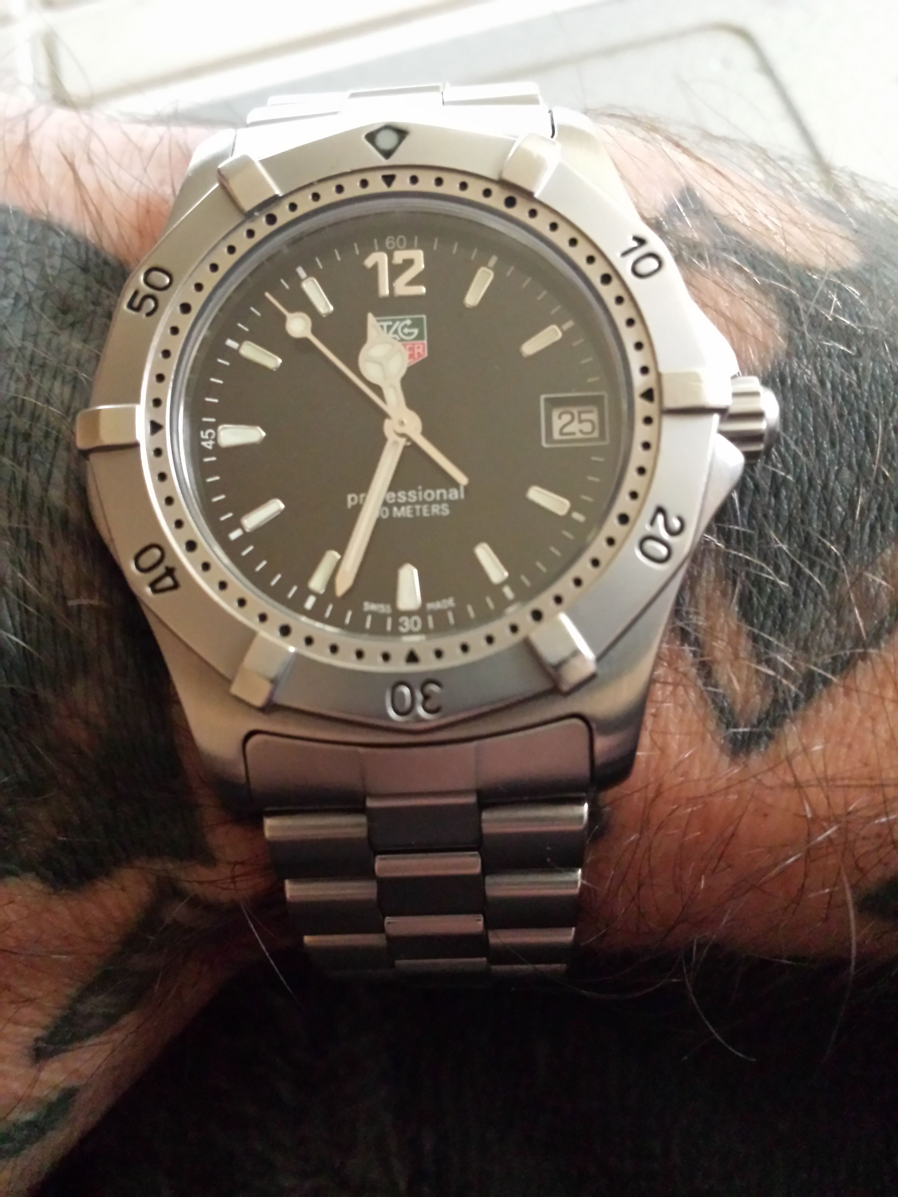 Vandaag heb ik voor een mooie prijs een Tag Heuer Aquaracer 300m overgenomen van forumlid mcfr. Het horloge heeft nog in november 2015 een grote beurt gehad. Verder nog een leuk gesprek gehad over wat favoriete klokjes en het horlogeforum.