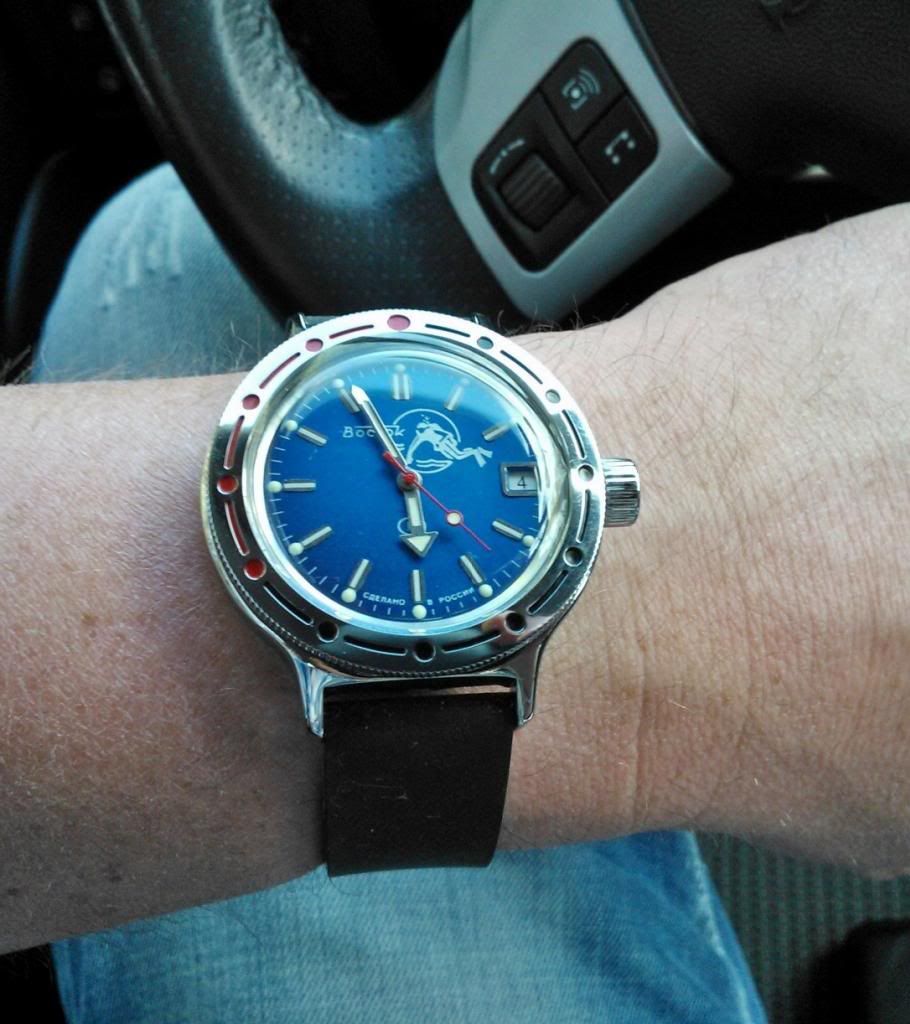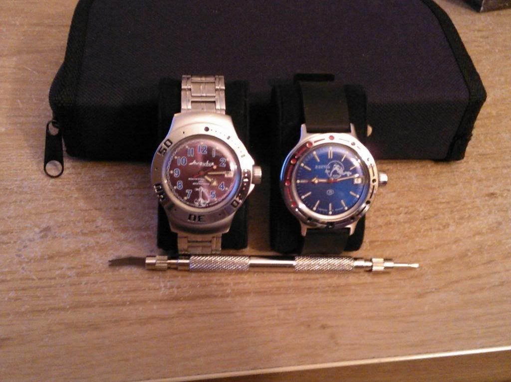 Omdat mijn trouwe werkpaardje toch wel een beetje eenzaam werd tussen al dat Japans getik, heb ik 'm maar een speelmaatje cadeau gedaan. Ditmaal de blauwe scubadude. Ik moet wel even wennen aan de wat kleinere maat, maar het is toch weer een heerlijk Russisch duikertje. Ik heb 'm op rubber gezet om te proberen, maar wellicht hebben jullie nog een leuke banden tip voor me…