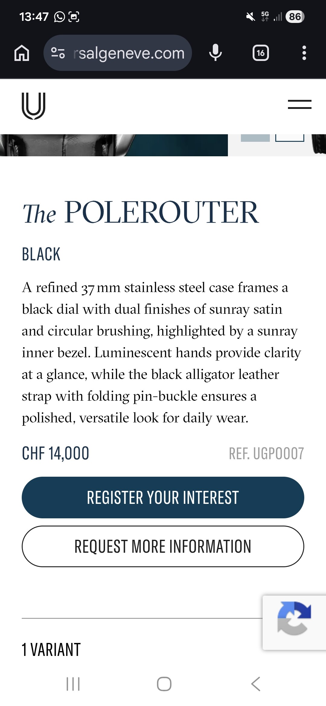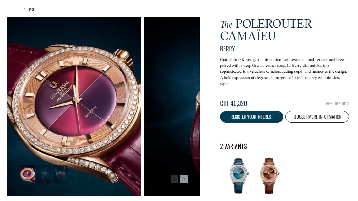 Ik zie wel prijzen hoor. Bijv CHF 14.000 voor de zwarte dial Polerouter 37mm.