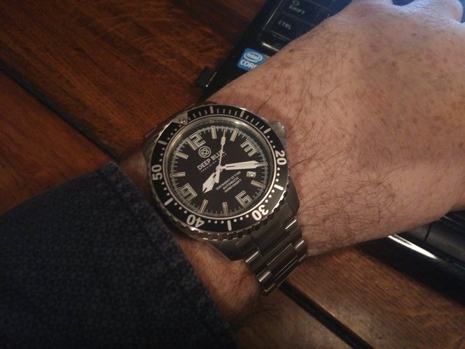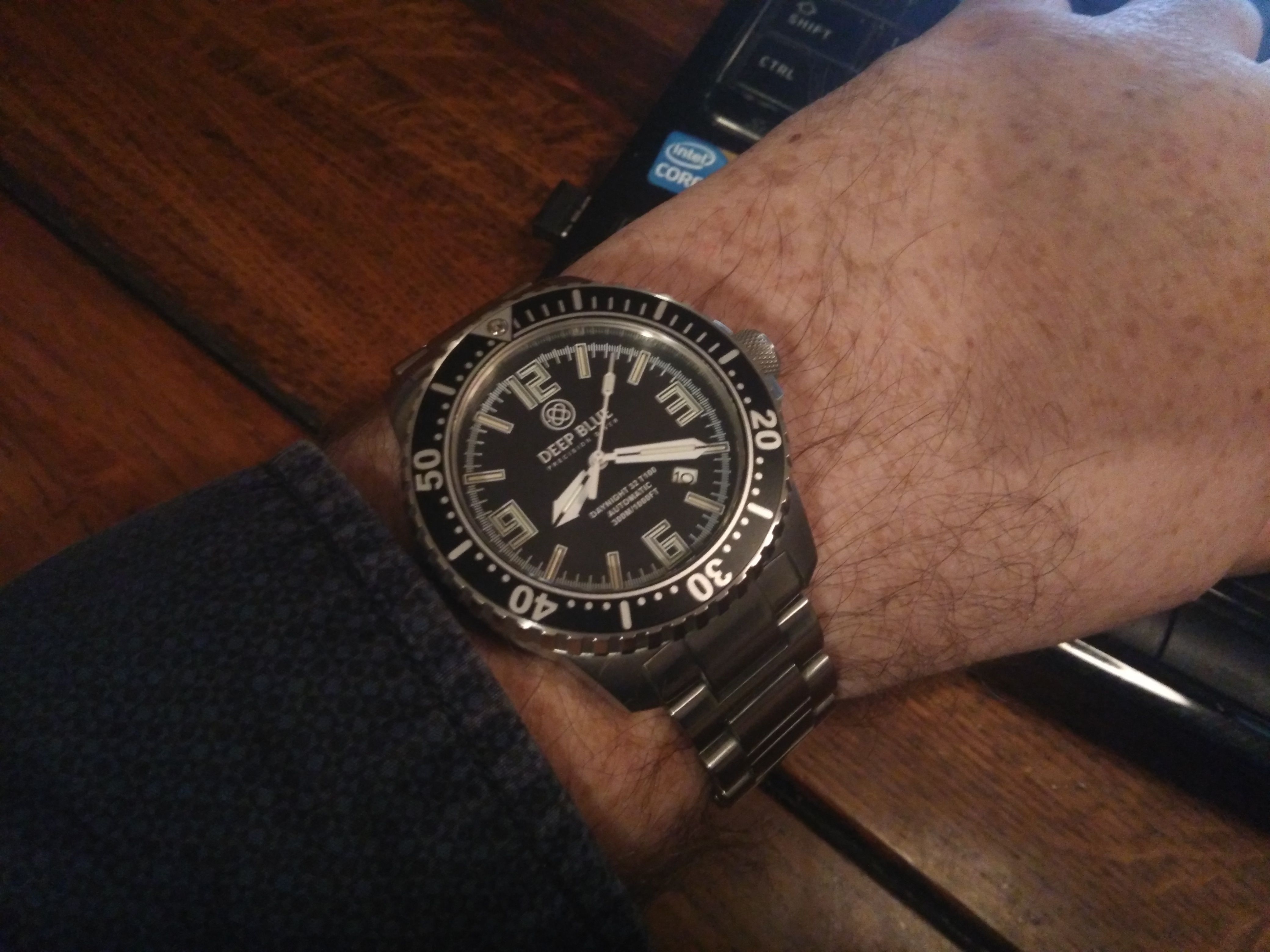 Ik vind m in het zwart echt wel mooi! Datum is inderdaad minder: die had ook weggelaten mogen worden. Ook zag ik liever gladius wijzers. Rustig wachten op een aanbieding bij de plakmerker nu