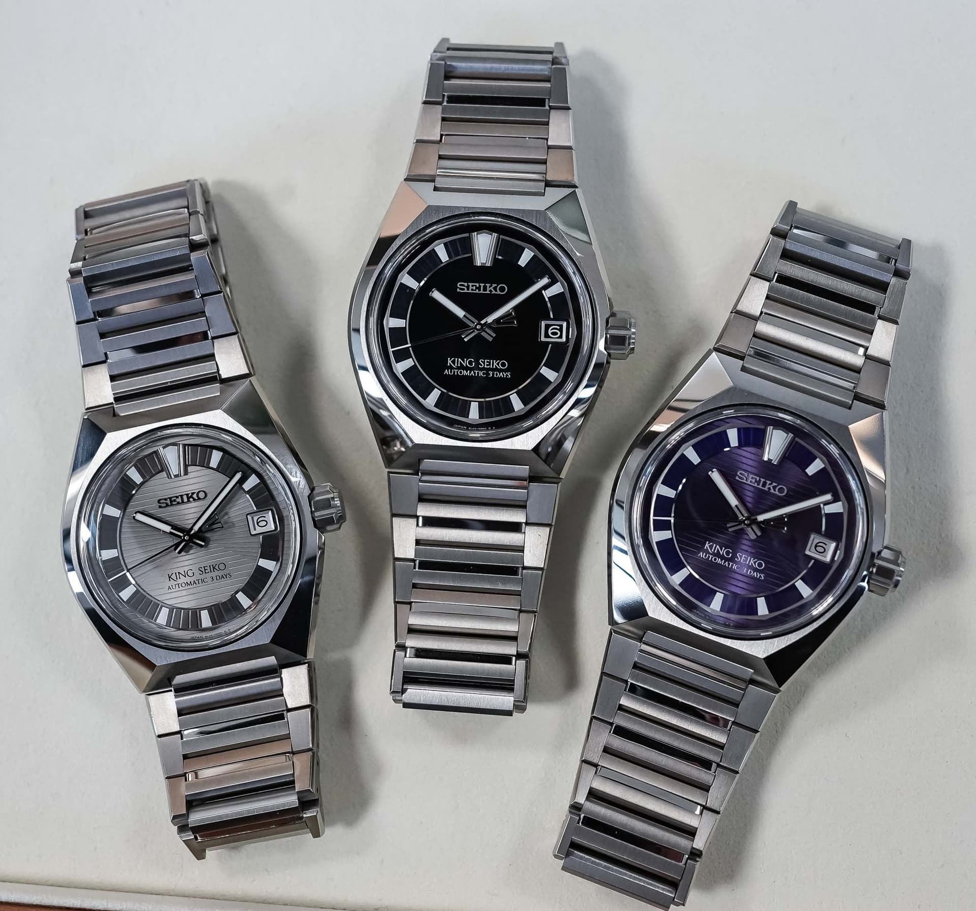En weer nieuwe King Vanac’s, nu in titanium uitgevoerd. Patroon op wijzerplaat is ook anders dan bij de vorig Vanac serie in staal, lijnen die naar het centrum dichter bij elkaar komen. Oh, en de prijs is met €3.950 ook €500 gestegen. Verder zie ik zo snel weinig verschillen. Wacht, de naamgeving is apart: HKF001 tm HKF003.