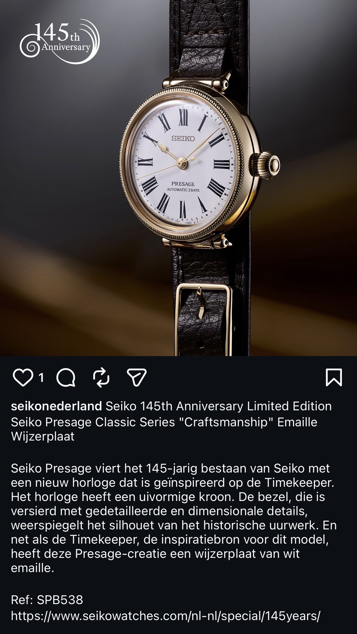 Ik vind dit dus best een mooi horloge maar die ‘presage three days automatic’ tekst hadden ze mogen weglaten. Voegt niet veel toe en doet wat mij betreft wel afbreuk.